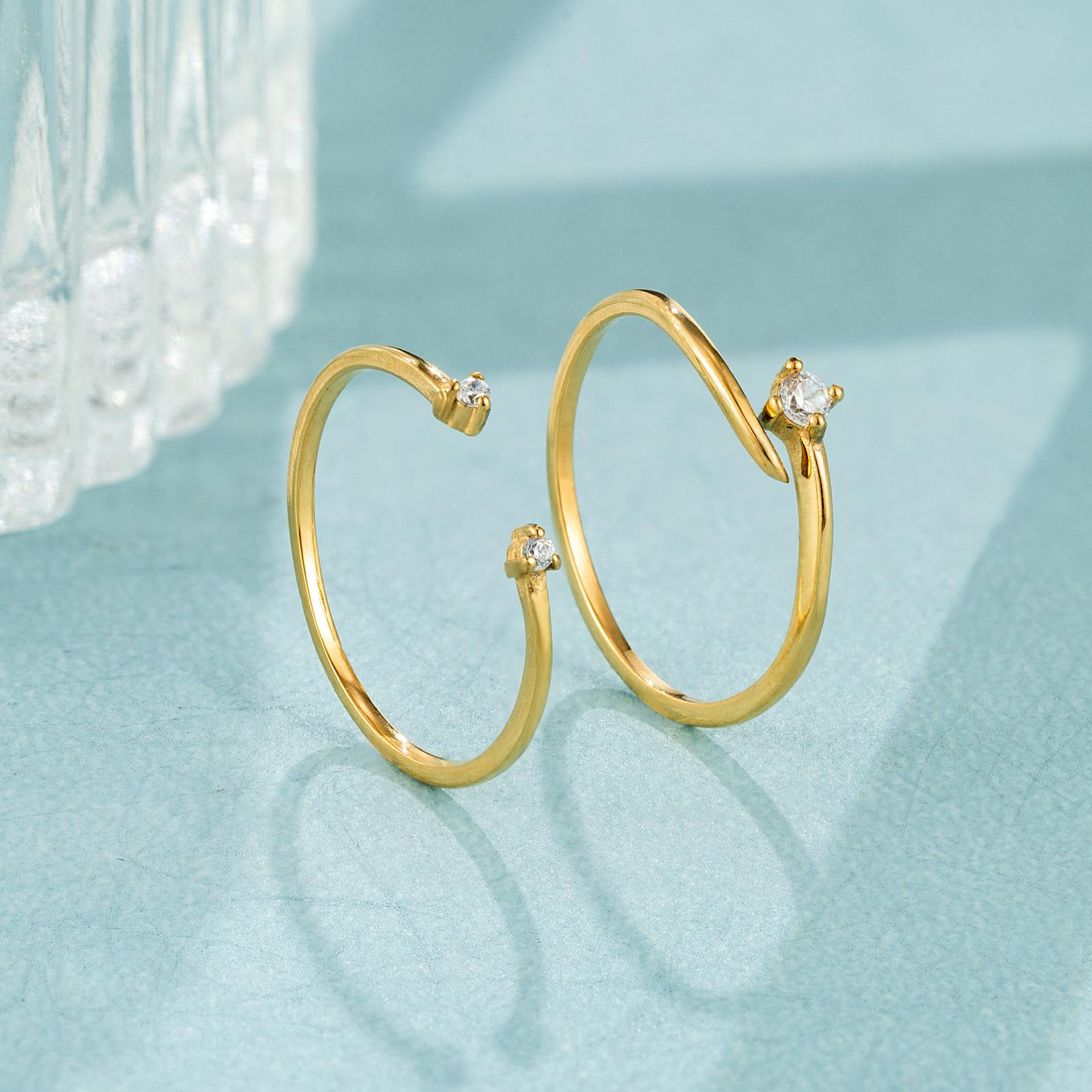 18K Gold Open Single Diamond Ring, 18K gold open double diamond ring