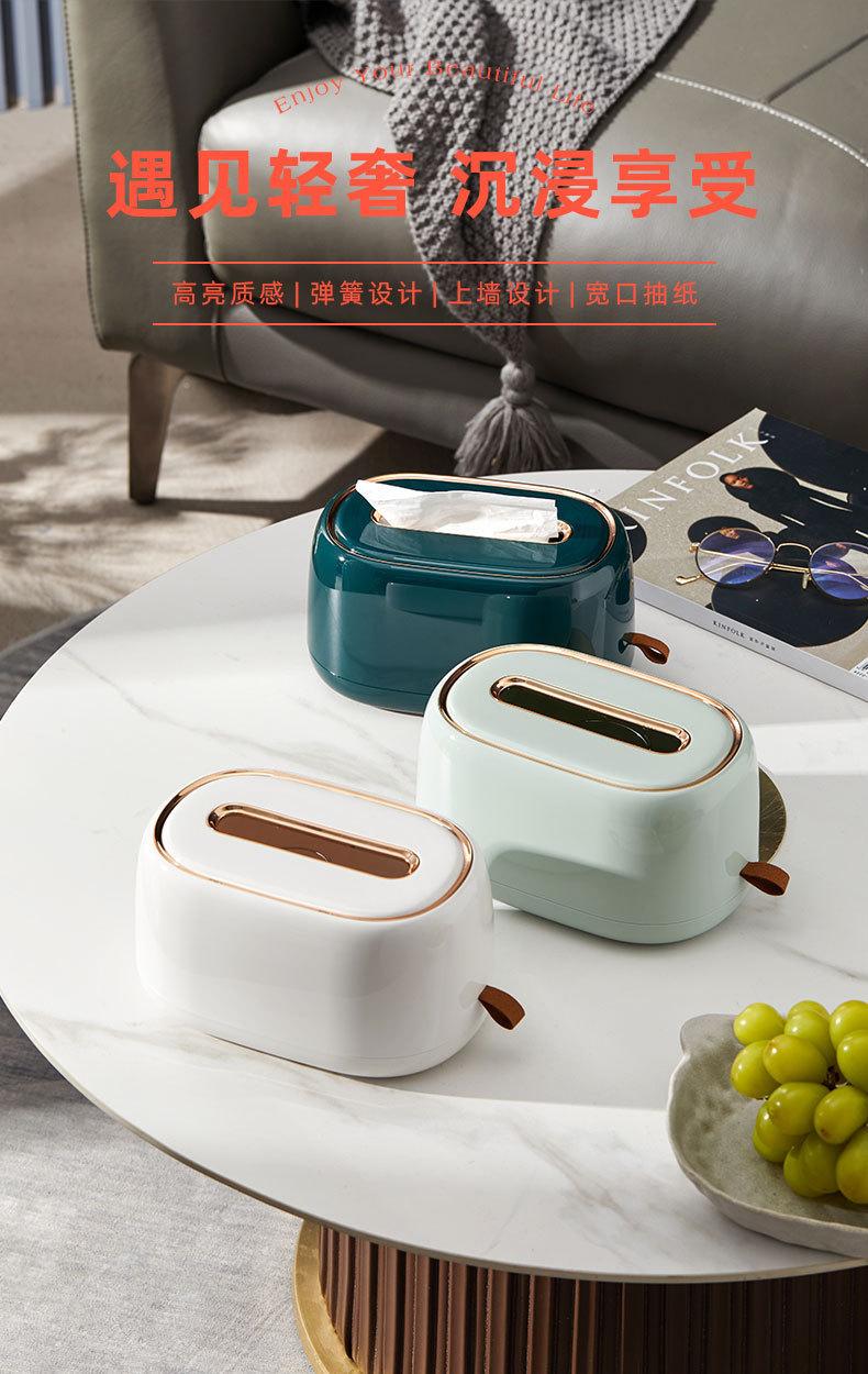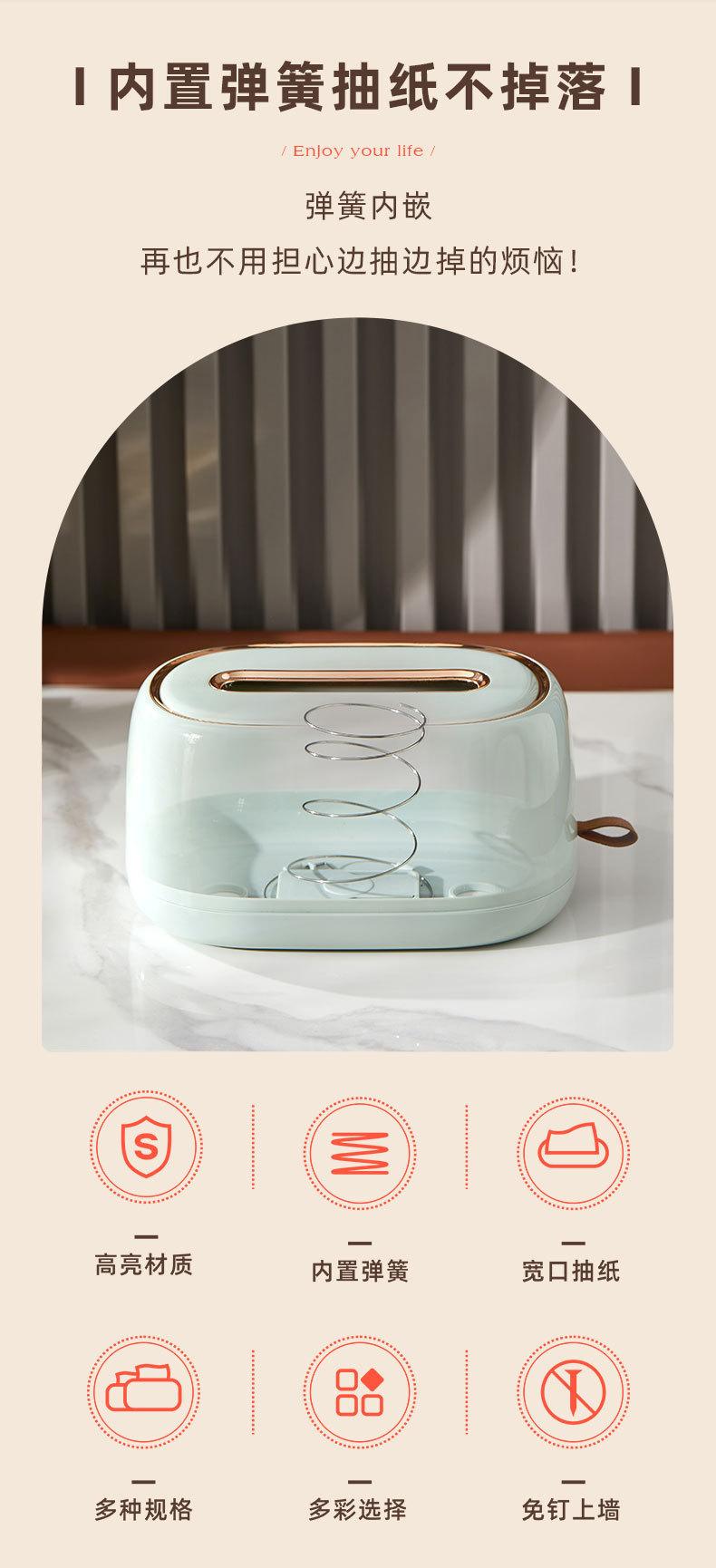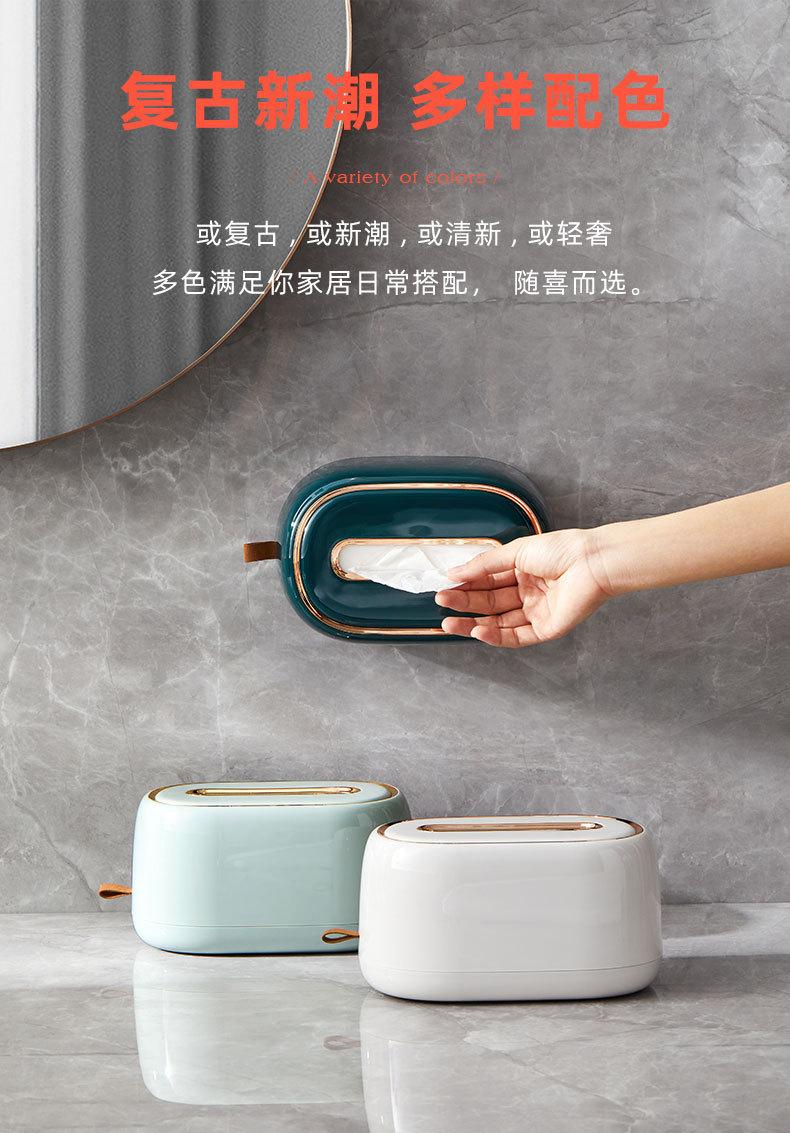 Caja de pañuelos de escritorio montada en la pared Lujo ligero Soporte para pañuelos con resorte Hogar Perforación libre Baño Inodoro Sala de estar Caja de papel
