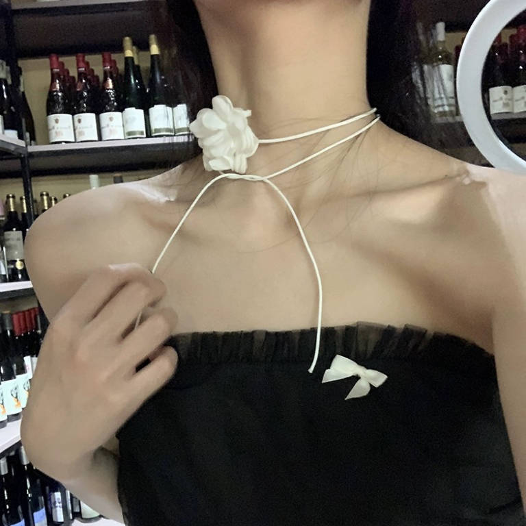 Compra Gargantilla elegante con cordones en rosa de noche oscura, collar para mujer, diseño de nicho de lujo ligero, sentido de alta calidad, dulce y fresco, cadena de clavícula al por mayor en Joom.pro