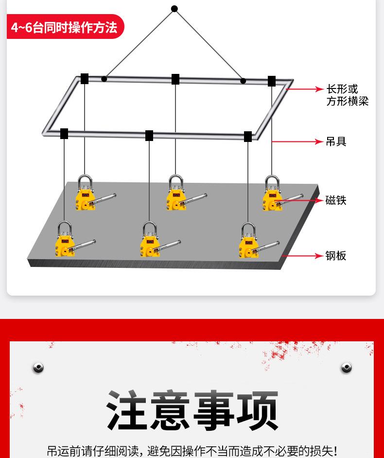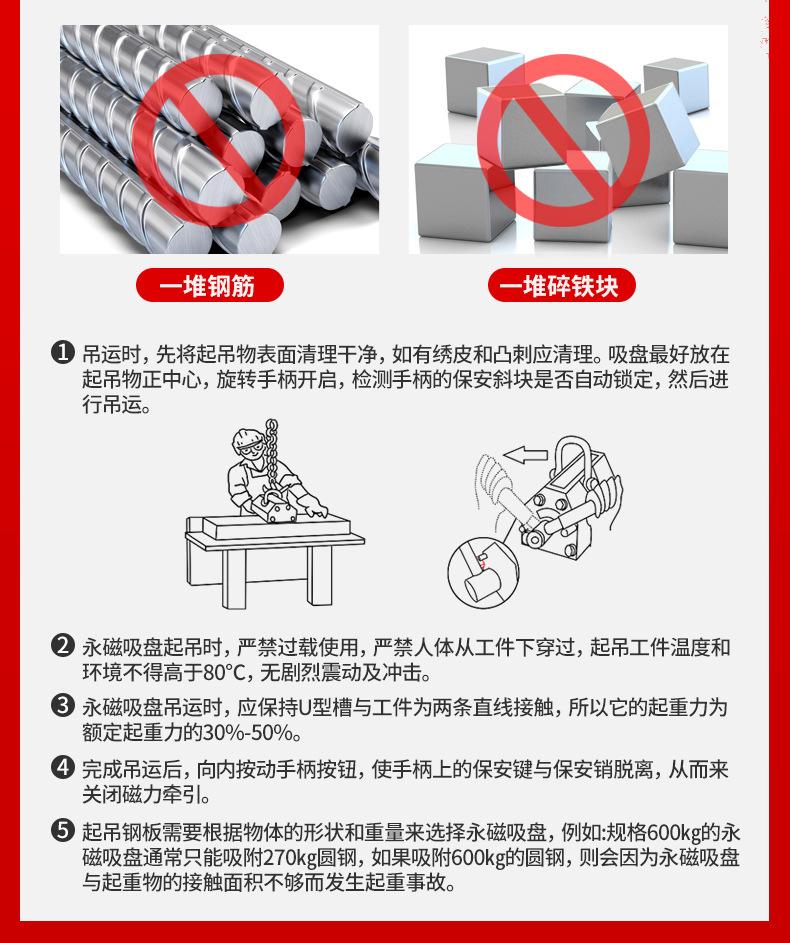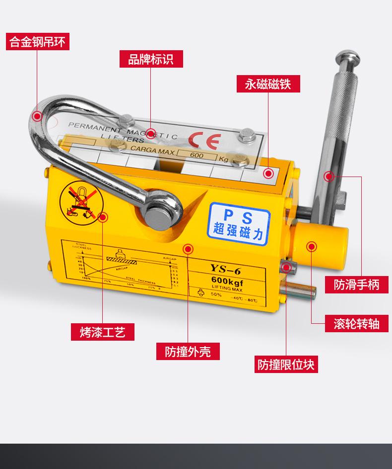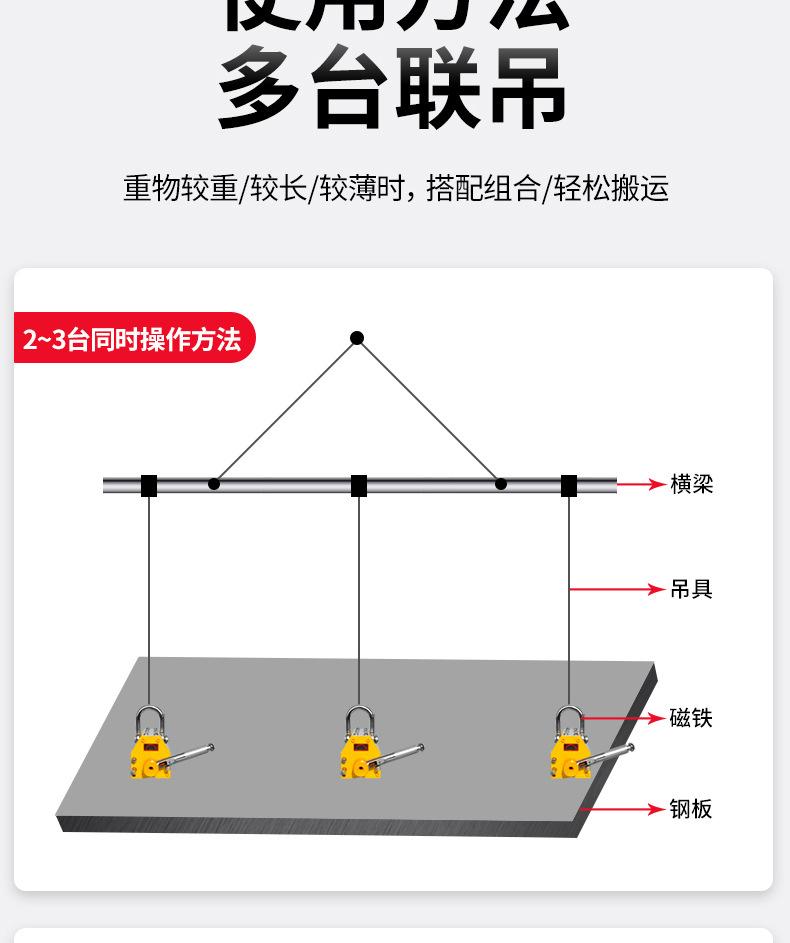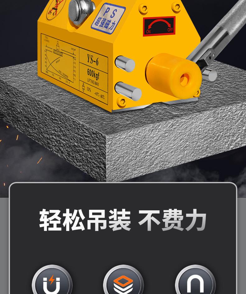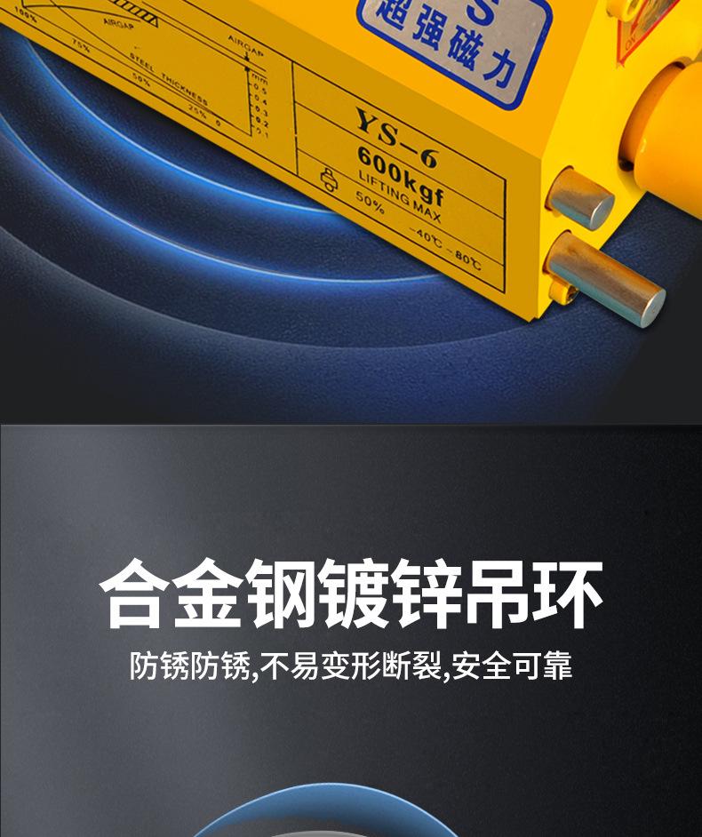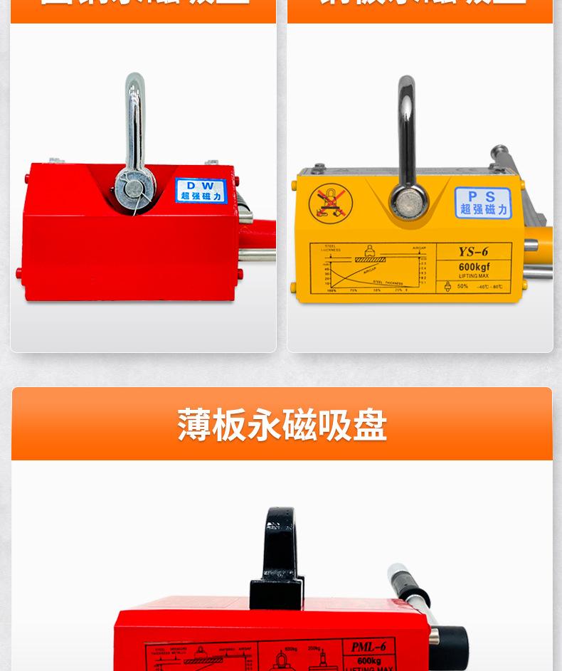 Dispositivo de elevación de 1/2/3/5 T con ventosa magnética, ventosa magnética fuerte, dispositivo de elevación de imán permanente fuerte industrial