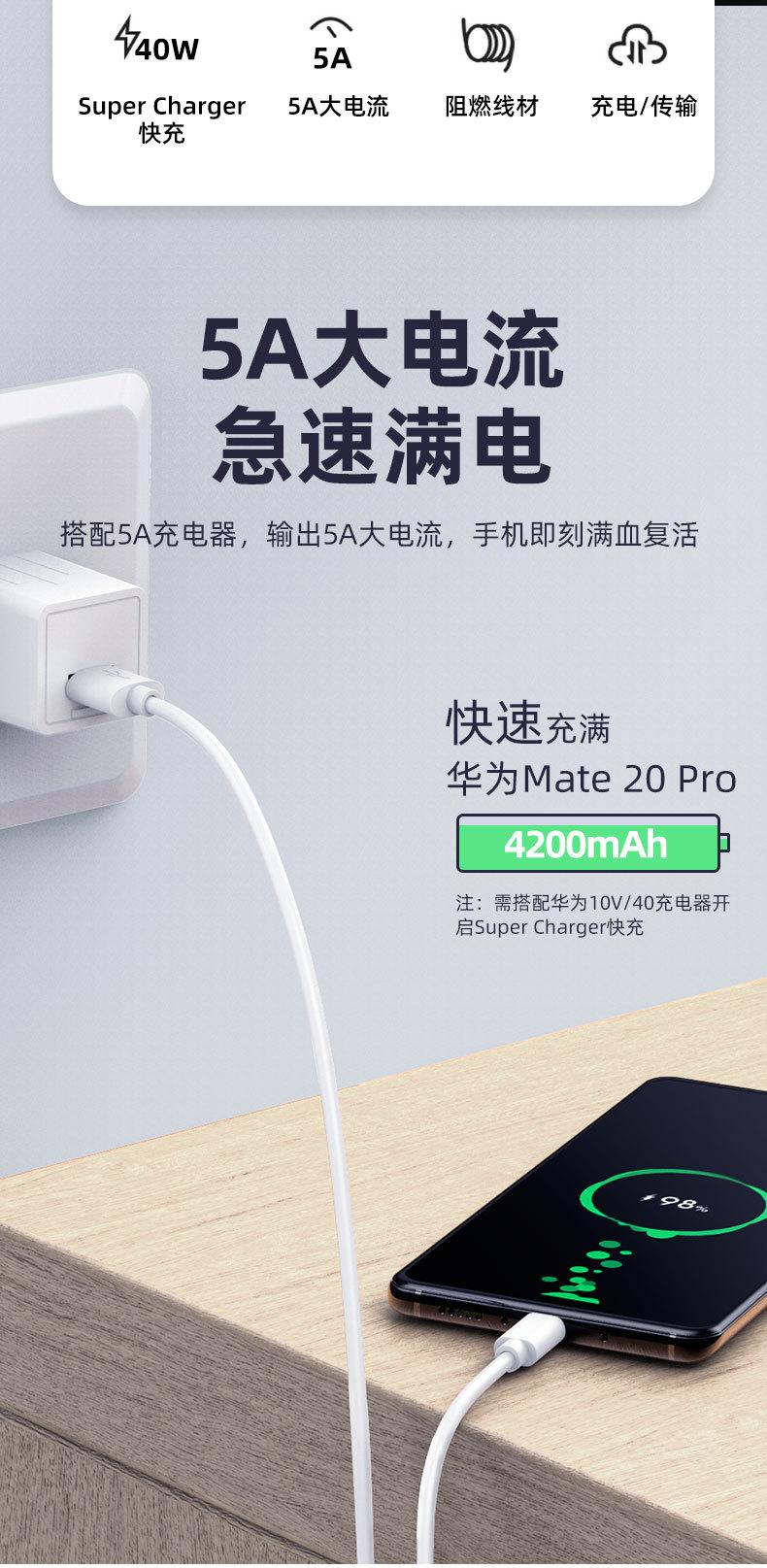 5A Huawei Type C fast charging line (bare line), 5A Apple fast charging line (bare wire), 5A Android V8 fast c...
