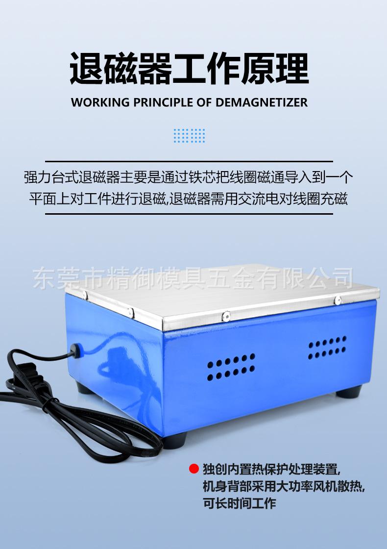 Durante el uso, la pieza de trabajo no debe operarse con agua para evitar que el agua entre en el desmagnetizador y queme la bobina.