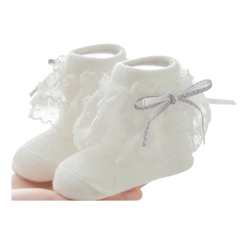 Medias de encaje para niños,Borde de encaje + lazo, están cosidas, no se caen fácilmente