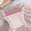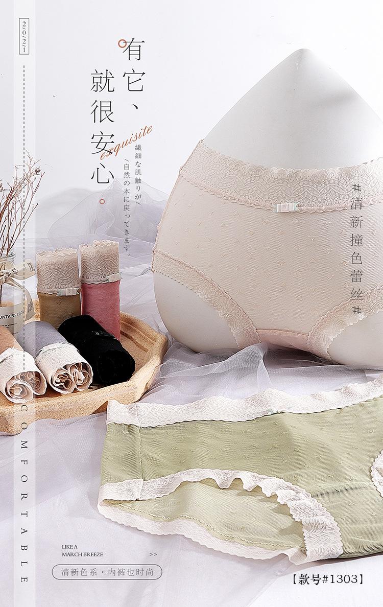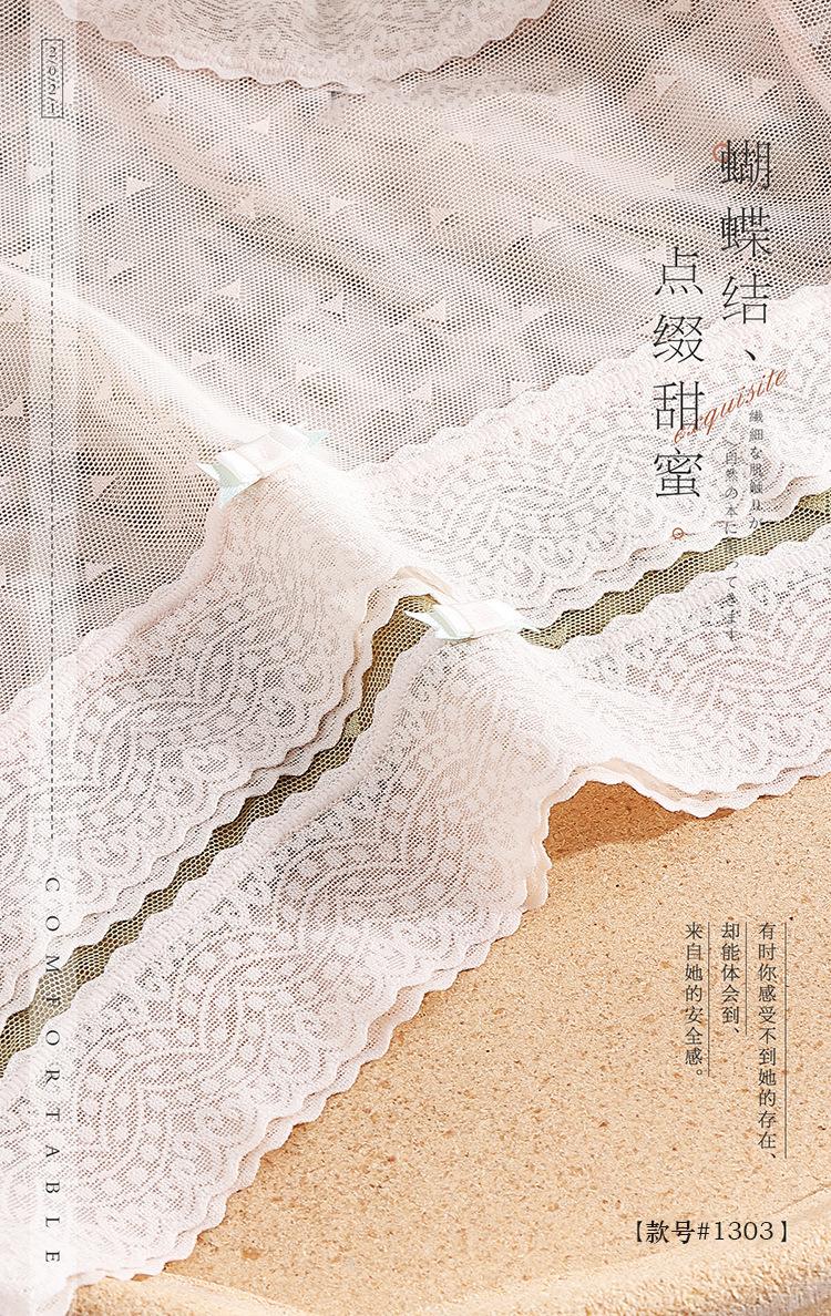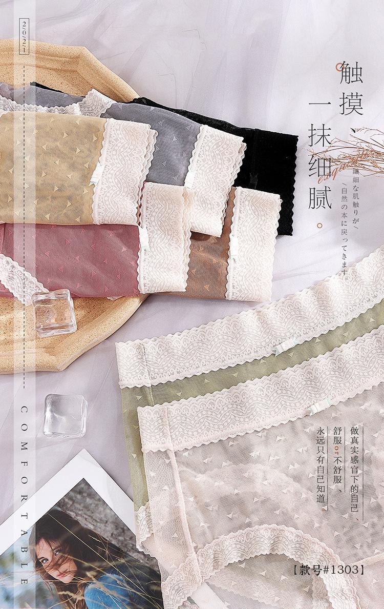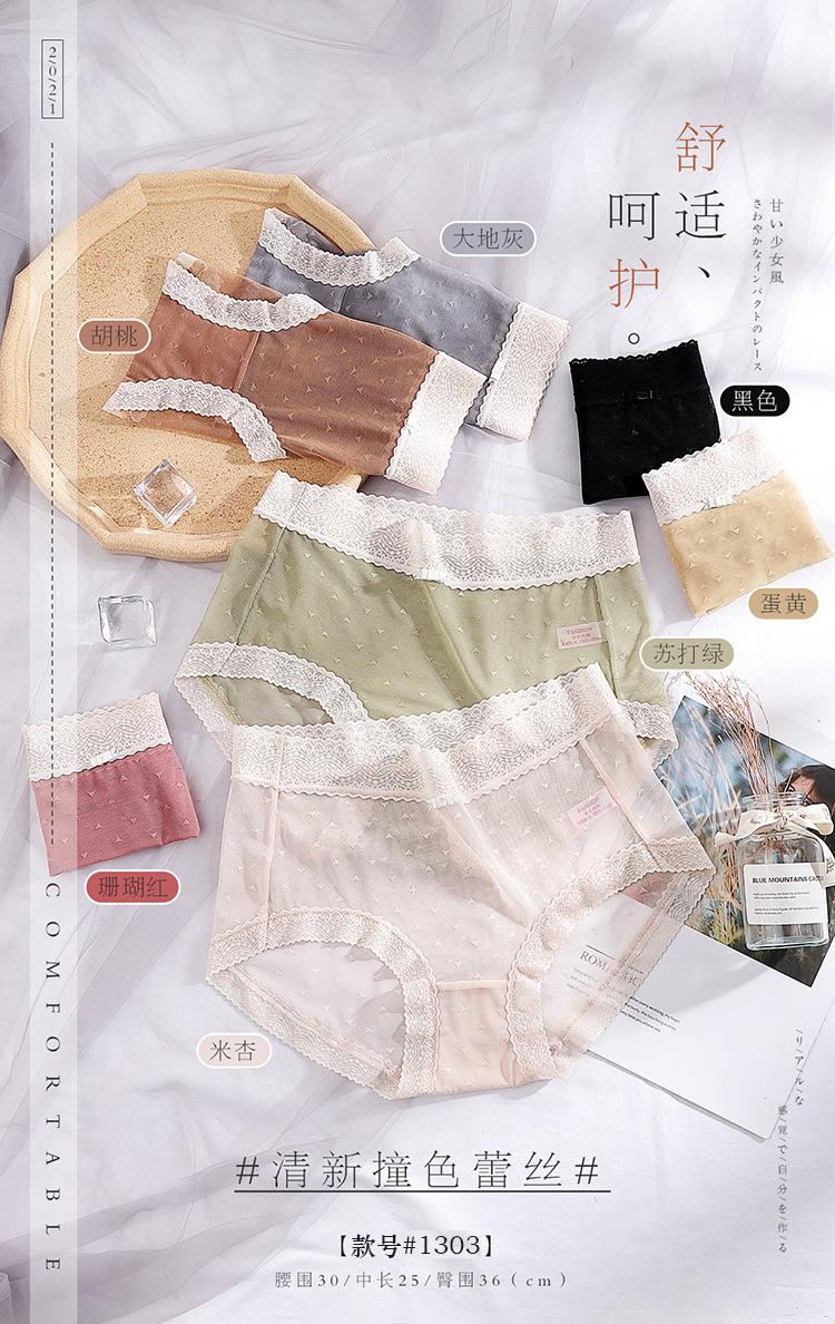Pantaletas Sexy Sin Costuras de Seda de Hielo, Calidad Boutique Pure Desire, Encaje de Malla Francesa de Lunares de Cintura Alta, Entrepierna de Algodón Puro