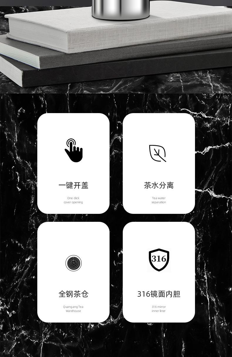 Compra Taza de agua para automóvil con tapa abierta con un clic Taza de separación de té de acero inoxidable 316 Taza de té de negocios para hombres Taza de vacío de apertura rápida al por mayor en Joom.pro
