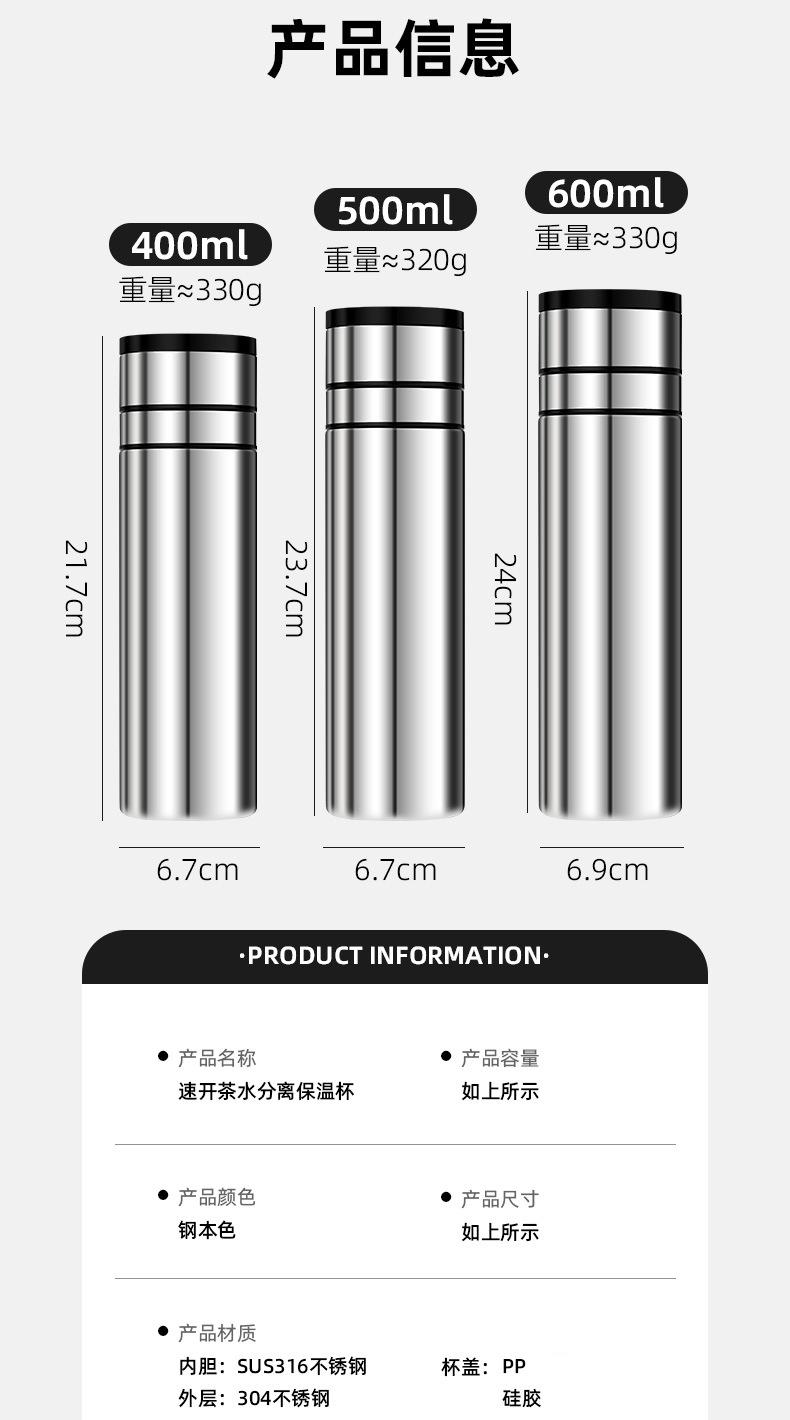 400ml tea drain (stainless steel cup body), 400ml tea bin (stainless steel cup body), 500ml tea drain (stainle...