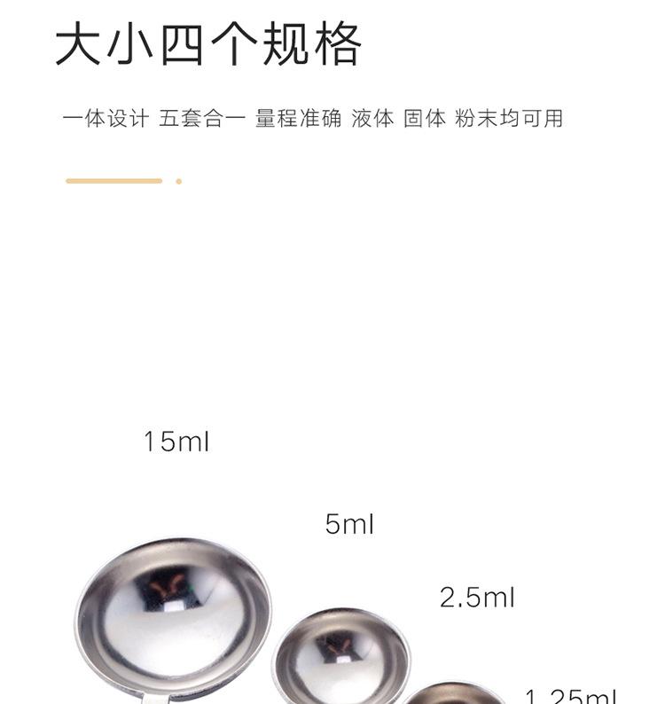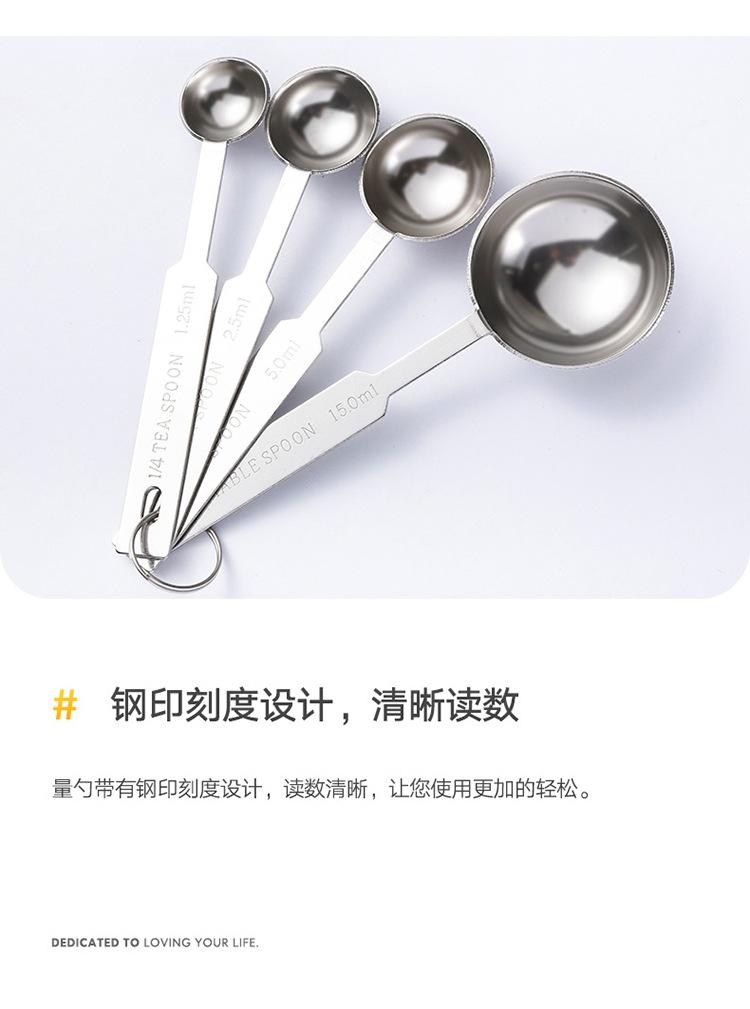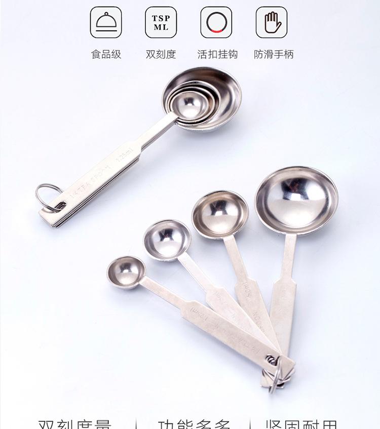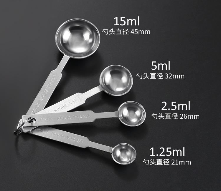 Cuchara medidora de acero inoxidable 201 herramienta de medición para hornear en la cocina con escala juego de cucharas medidoras para sal y leche en polvo juego de cuatro piezas
