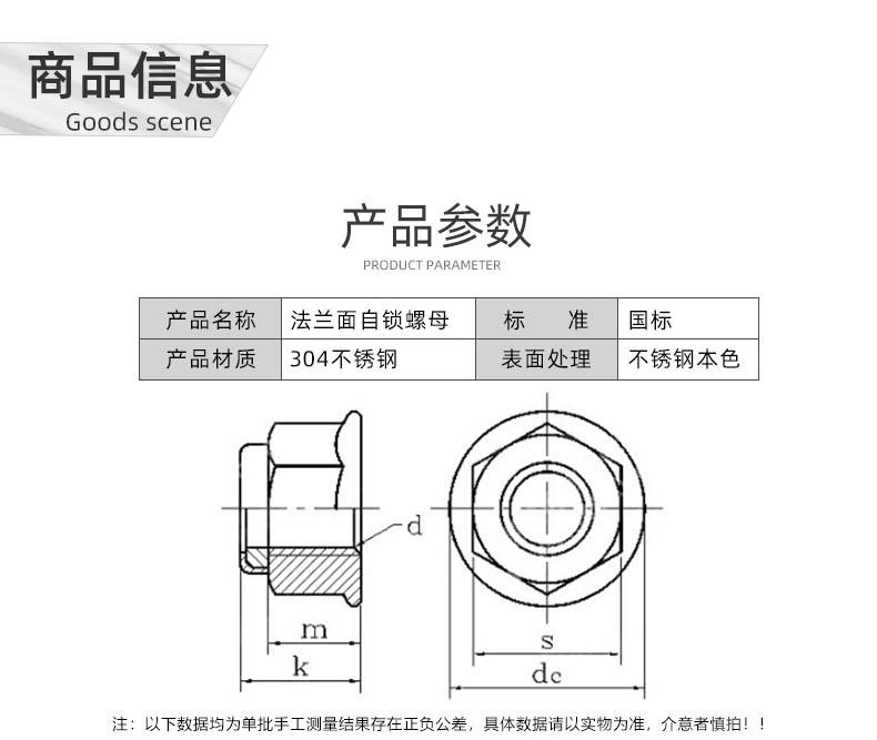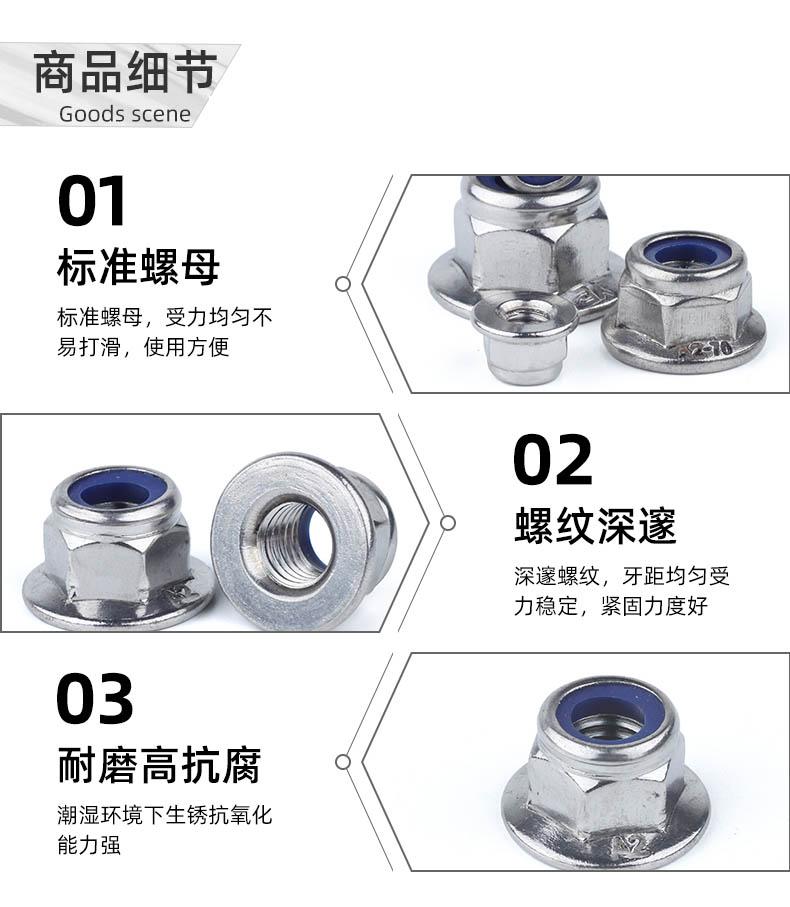 Tuerca de brida de nailon de acero inoxidable 304, por favor contacte al servicio al cliente para dimensiones detalladas, especificaciones y otra información