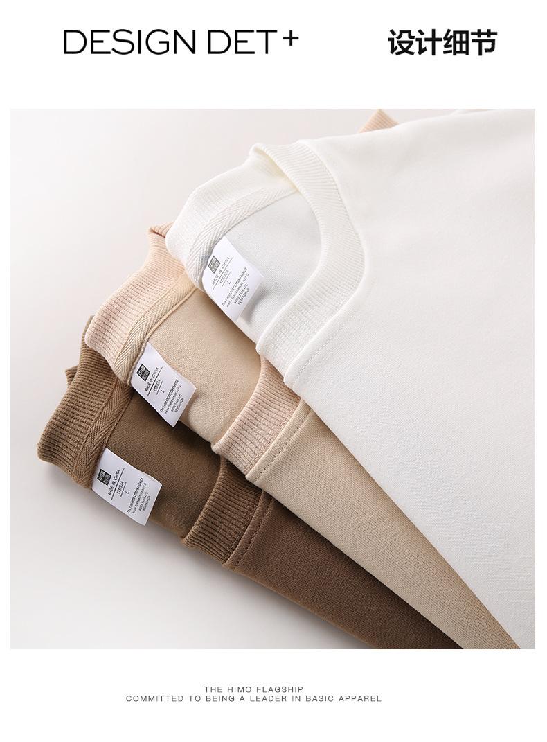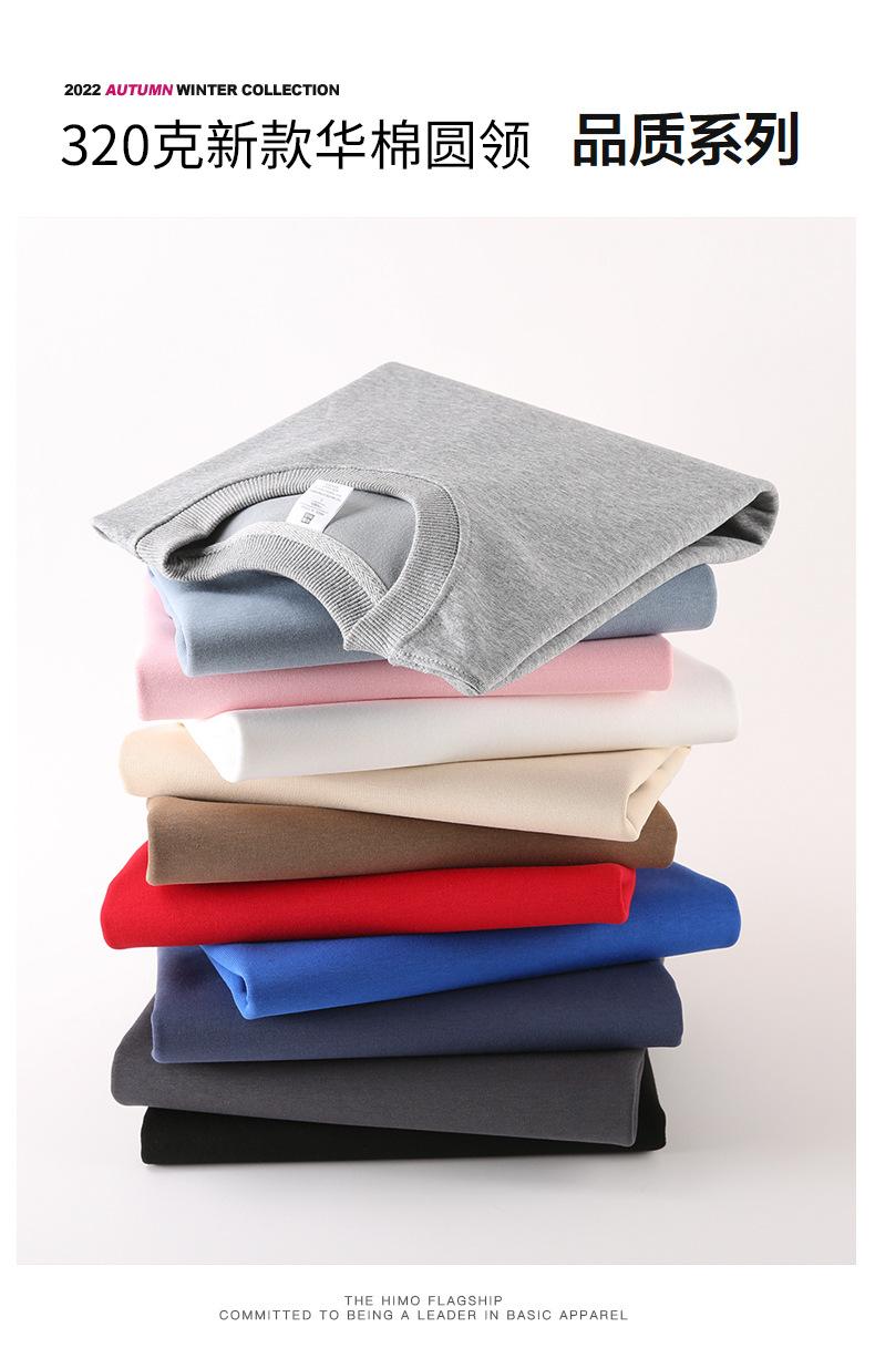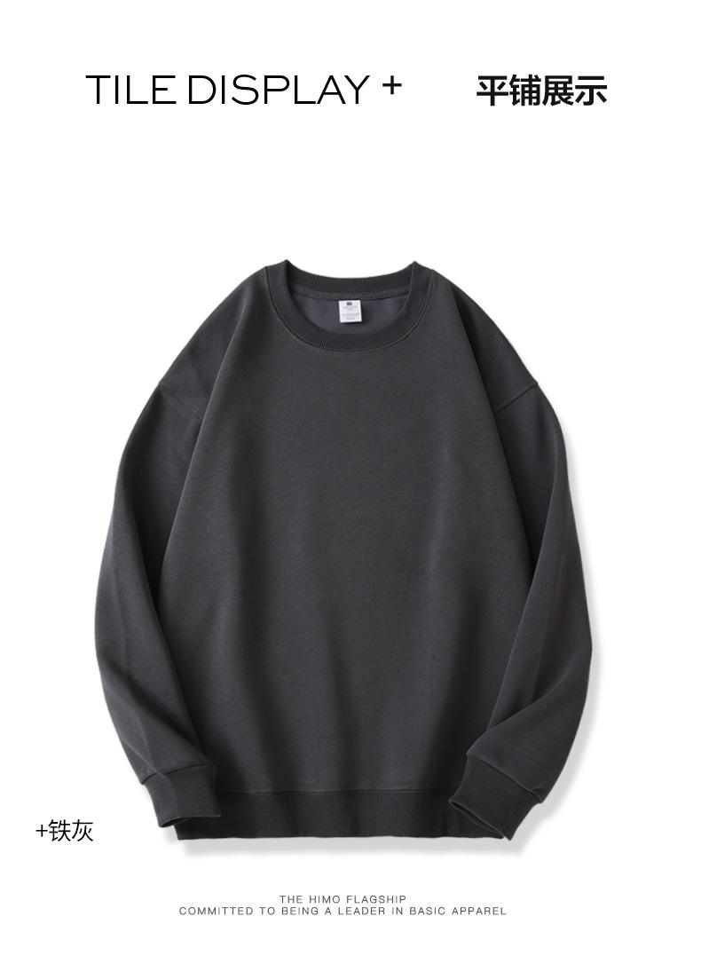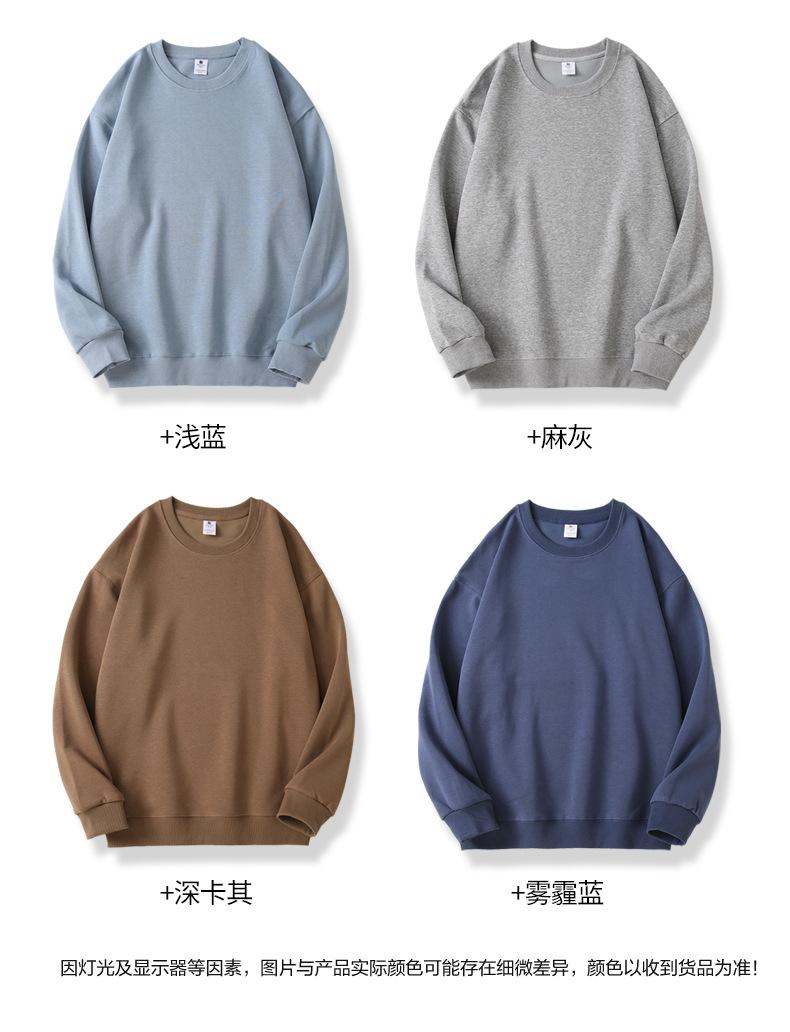 Suéter de cuello redondo de algodón chino con hombros caídos de 320 g, nuevo, informal, holgado, de color sólido, para hombres y mujeres, venta al por mayor