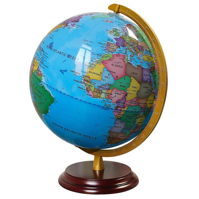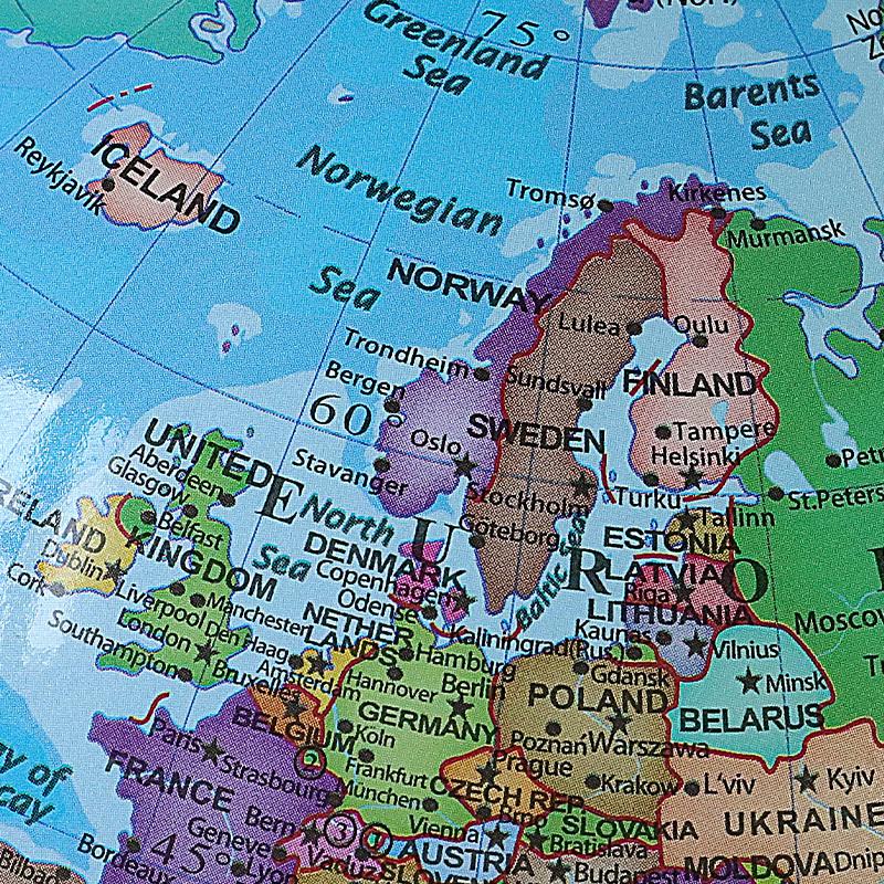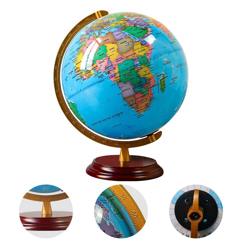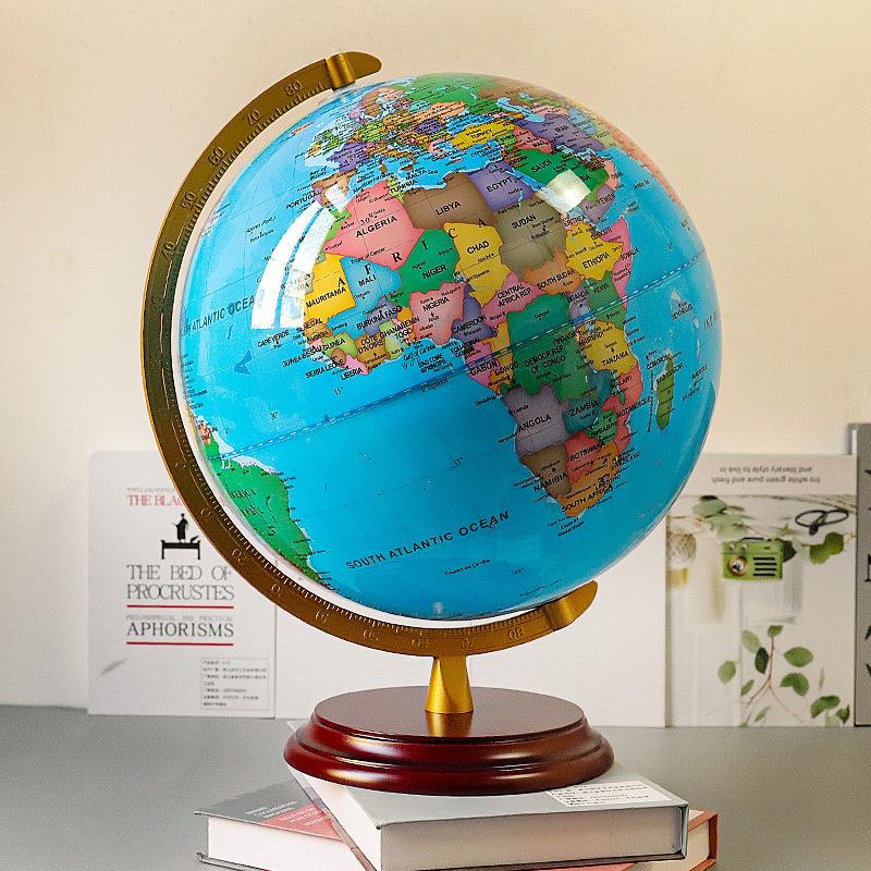 Globo terráqueo grande de alta definición en inglés puro con base de madera y adornos luminosos para la enseñanza de Europa y América para el globo transfronterizo.