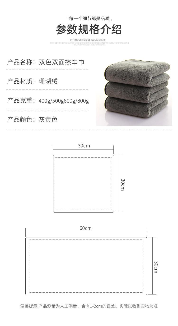 Toalla para Lavado de Autos de Comercio Exterior al Por Mayor Espesada Absorbente de Agua de Doble Cara Bicolor de Terciopelo Coral Trapo para Limpieza de Autos Toalla para Autos