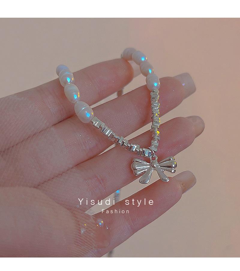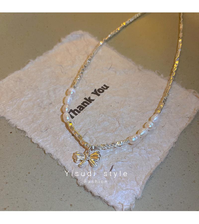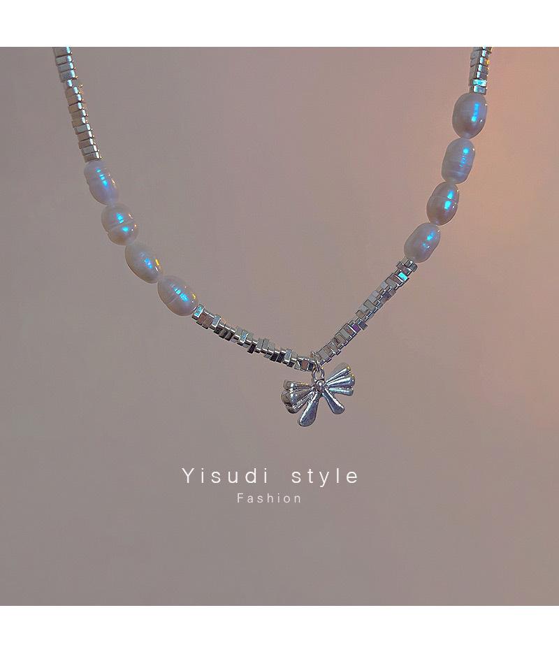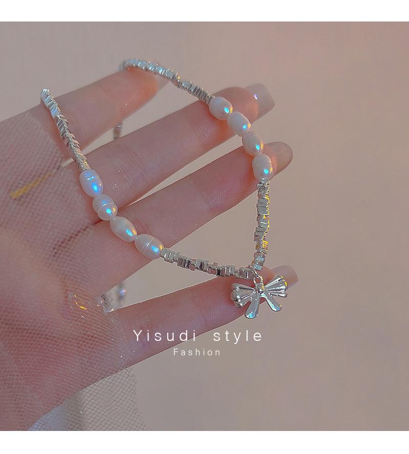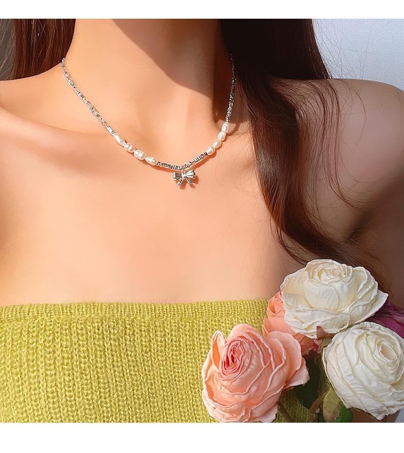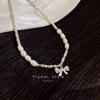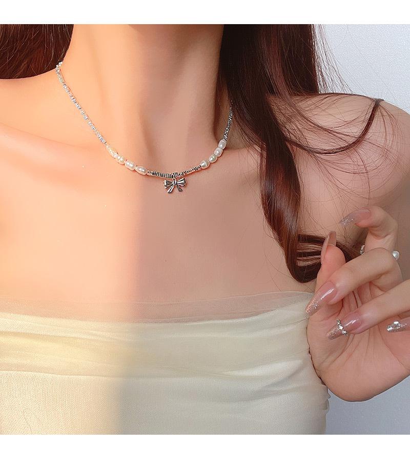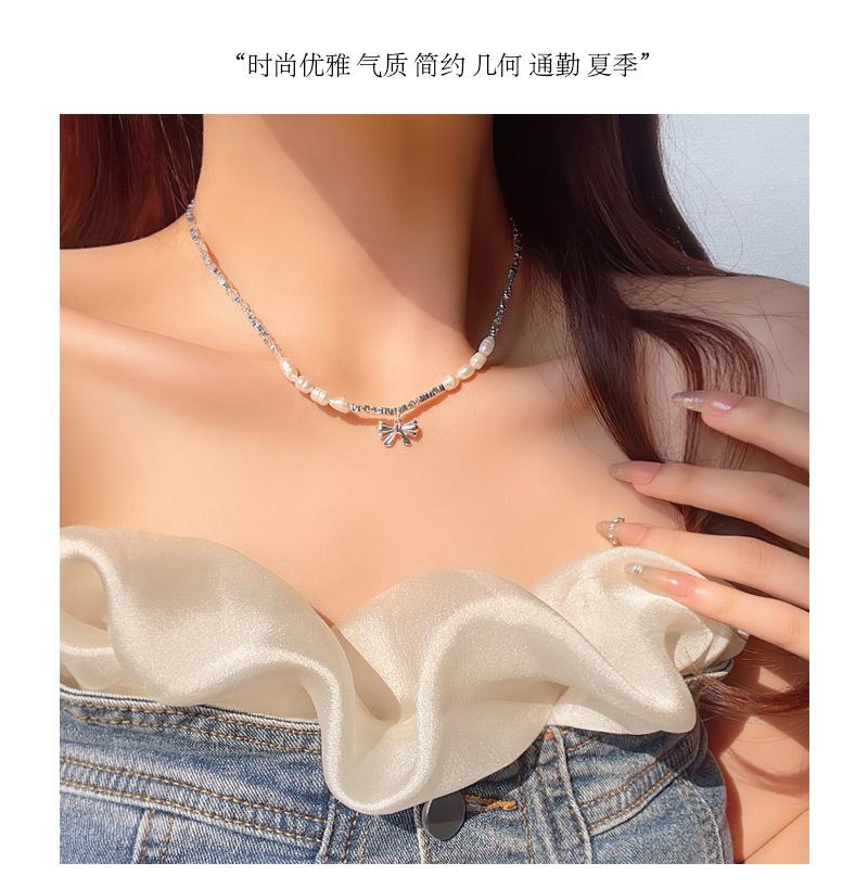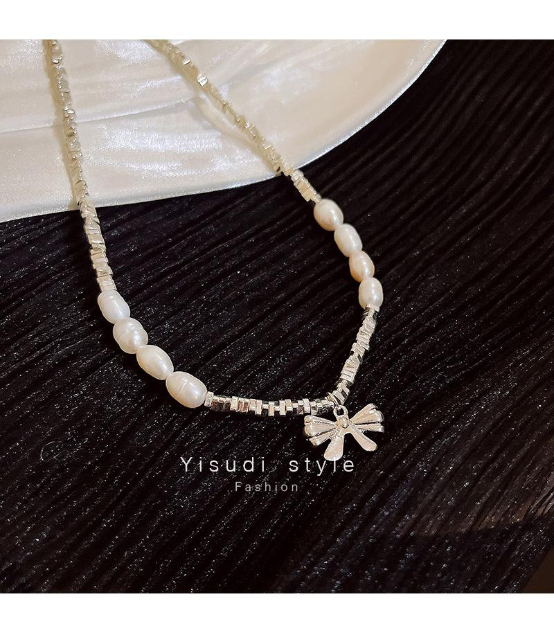 Collar de plata con costura de perlas para mujer, diseño de nicho, cadena de clavícula con lazo de alta calidad, collar de temperamento de lujo ligero