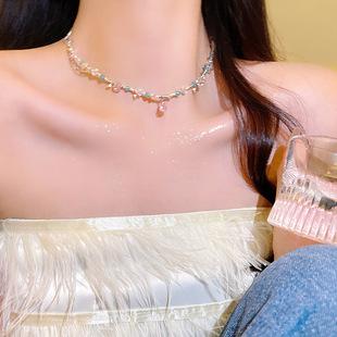 Collar de Borlas de Perlas Coreanas Diseño Nicho para Mujer Cadena Clavicular de Zircón Gota de Agua Accesorios de Moda para Celebridades de Internet Venta al por Mayor
