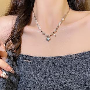 Collar de amor con perlas de diseño nicho para mujer, de lujo ligero y alta gama, nueva cadena para clavícula, collar de moda para celebridad de internet