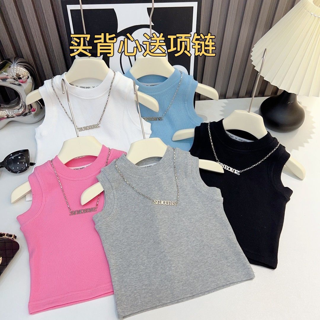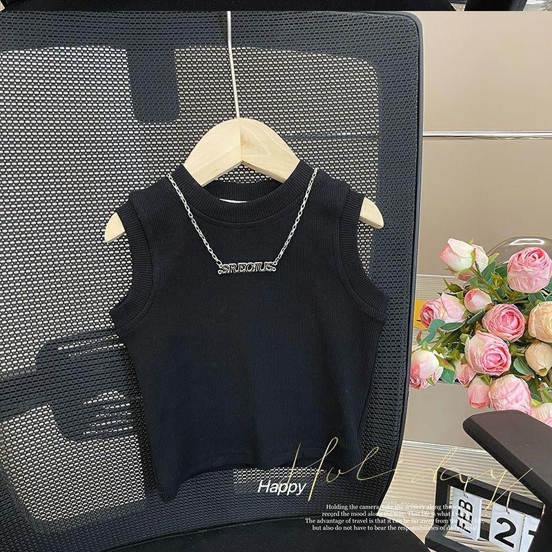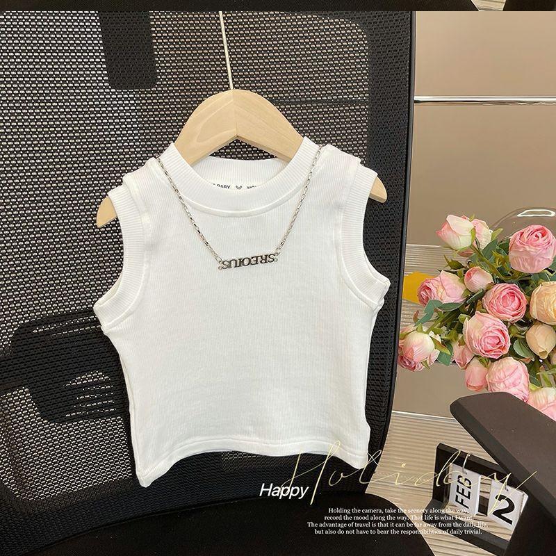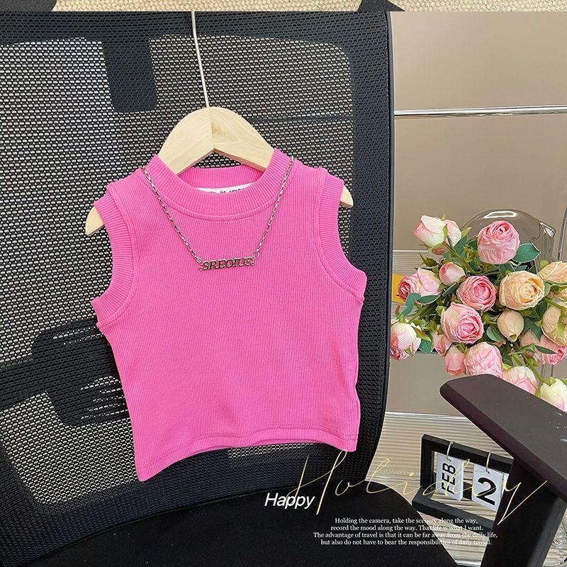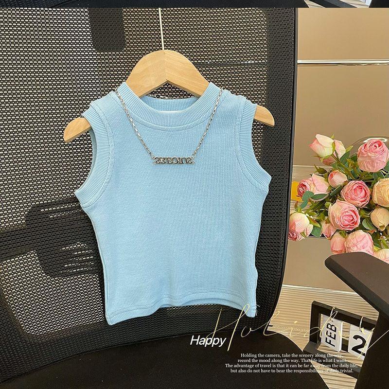 Camiseta de verano para niños y niñas, estilo occidental, con cuello coreano a la moda, sin mangas, de color liso