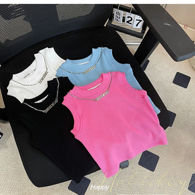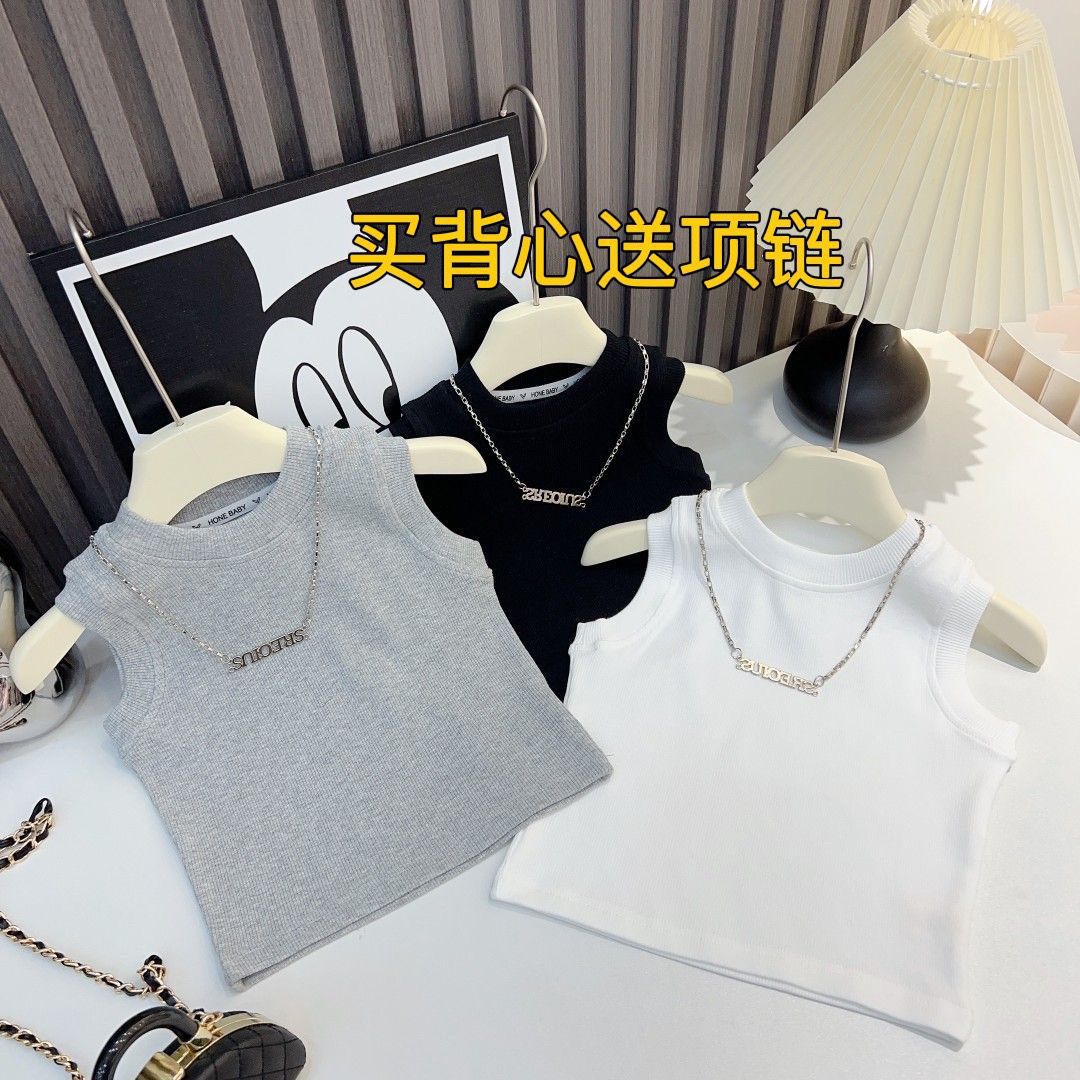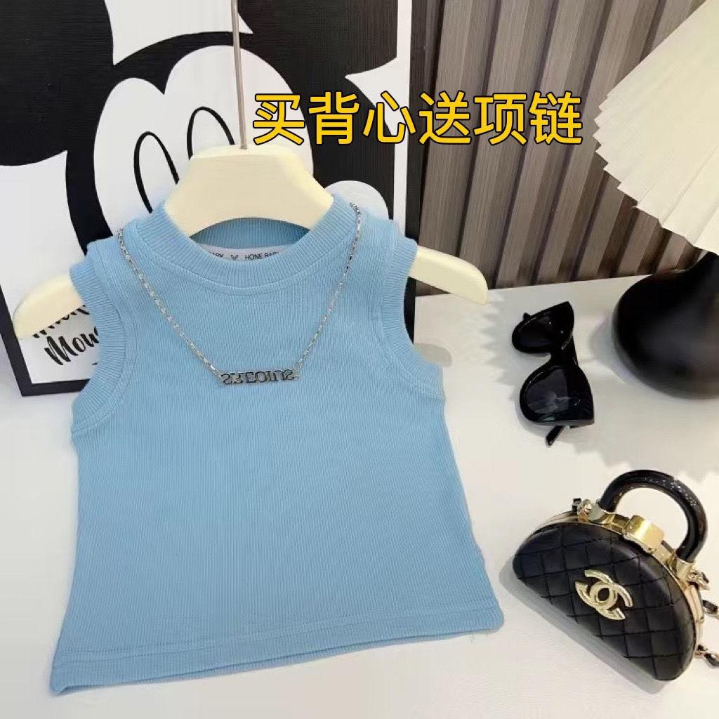 Camiseta de verano para niños y niñas, estilo occidental, con cuello coreano a la moda, sin mangas, de color liso