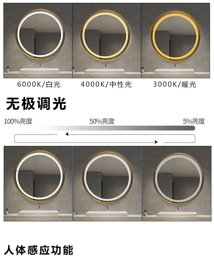 [Human body induction] + six touch (Bluetooth music + time temperature + defogging + three-color dimming)