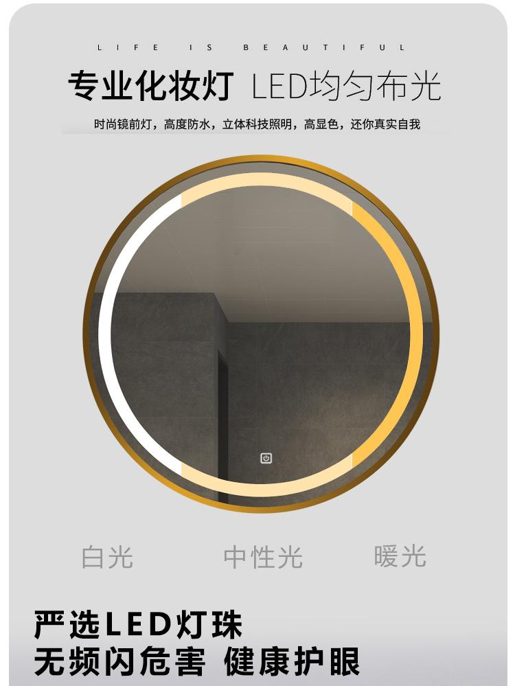 Espejo de maquillaje redondo para el hogar montado en la pared Tmall Genie baño con marco luminoso inteligente por voz antivaho espejo de baño
