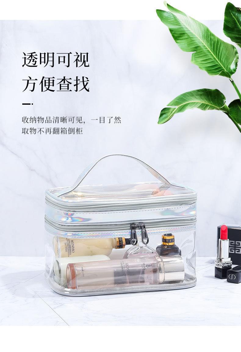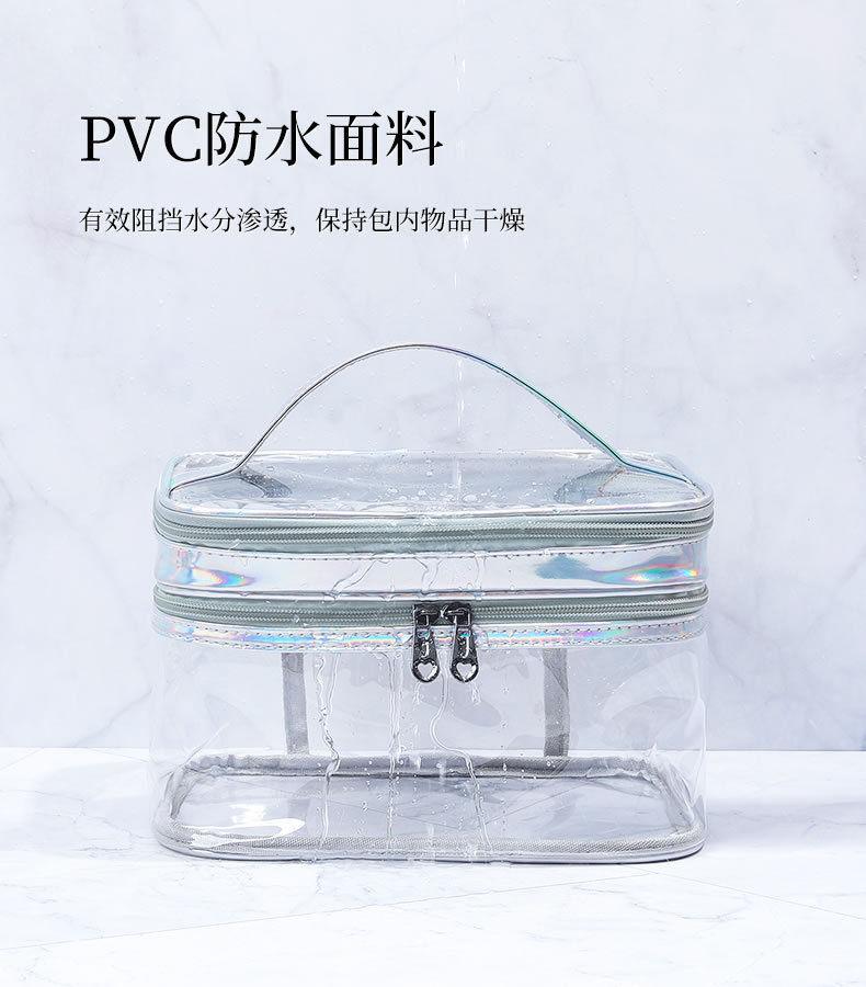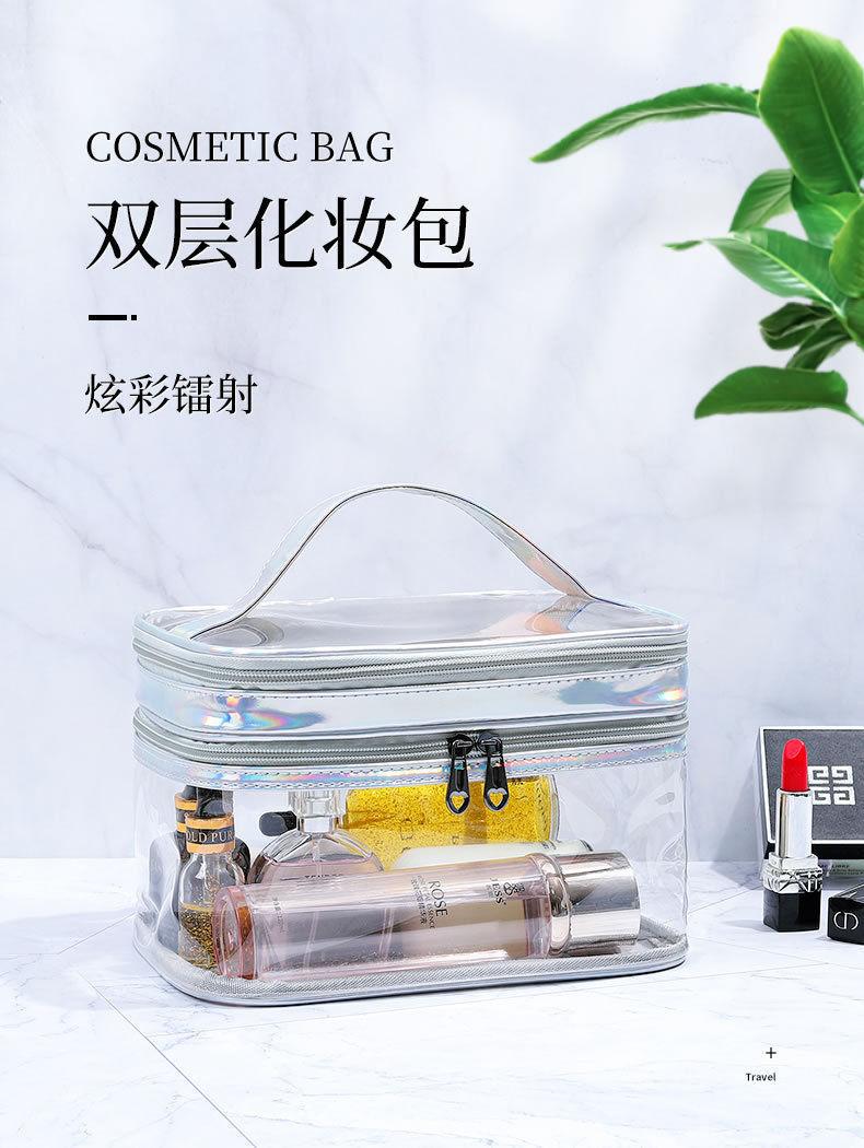 Bolsa de cosméticos transparente de doble capa, gran capacidad, bolsa de aseo impermeable, separada para artículos secos y húmedos, bolsa de almacenamiento de cosméticos de viaje portátil