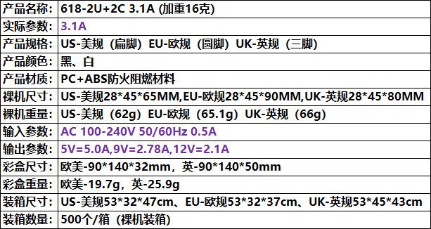 (618-2pd+2usb)-european standard 3.1a, (618-2pd+2usb)-us standard 3.1a, (618-2pd+2usb)-uk standard 3.1a, (618-...