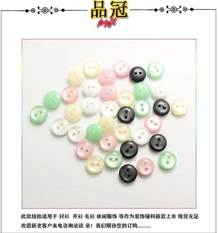 Botones de resina nacarados de dos ojos para bolsa de un solo lado, botones de color, camisa de mujer, camisa de chifón, botones de 11 mm