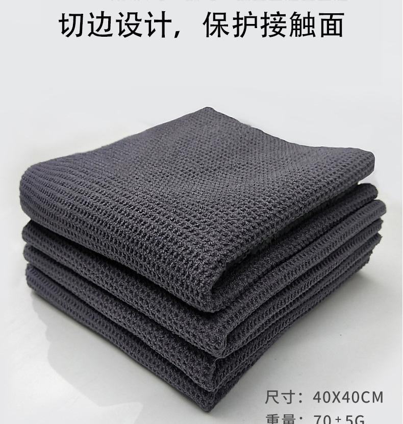 Straight edge 380GSM 40*40 gray pineapple lattice hot cut towel