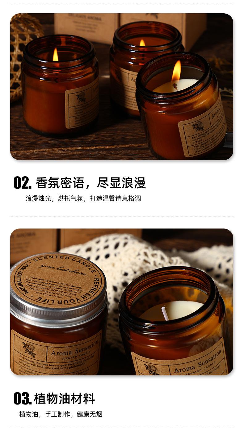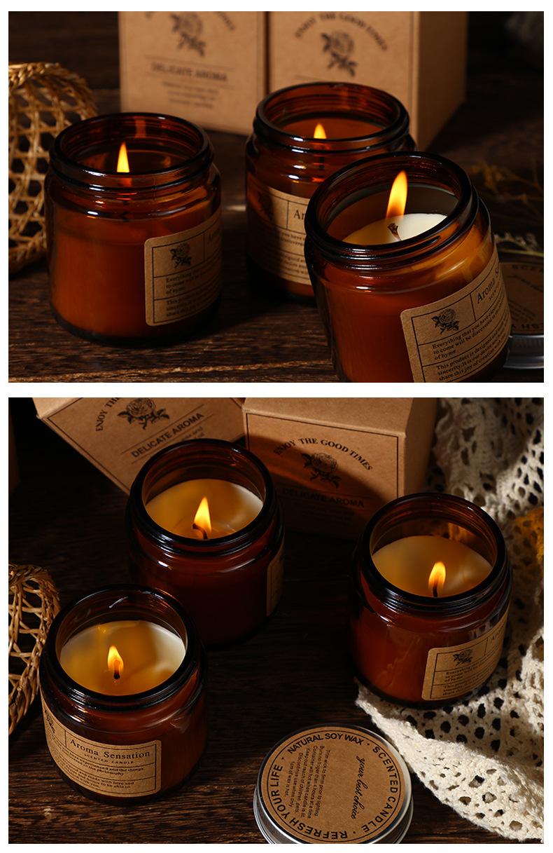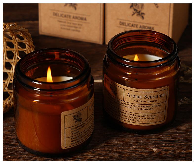 Vela de aromaterapia en vaso de vidrio marrón de nicho, venta al por mayor, regalo de boda, vela con fragancia romántica sin humo, personalizada transfronteriza