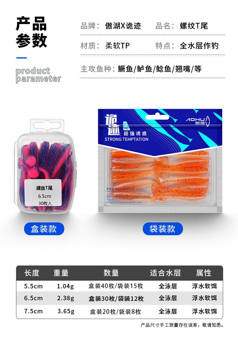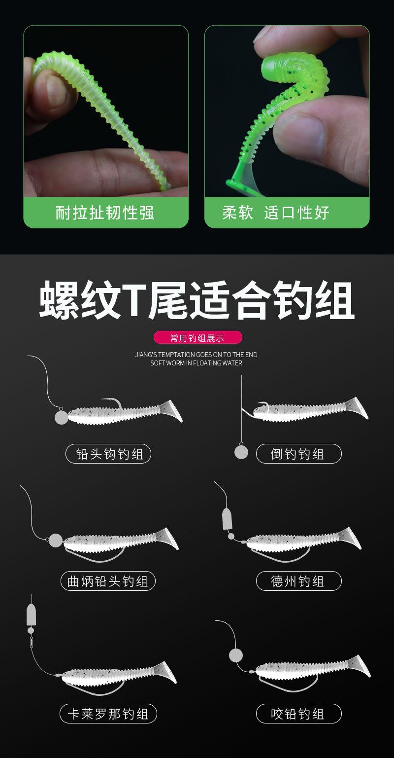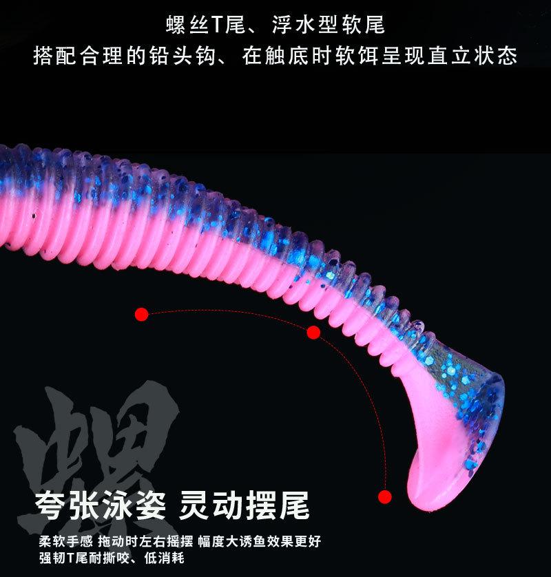Aohu Señuelo de Largo Alcance Cebo Señuelo de Cola T Roscado Gusano Suave Cebo Falso de Pesca Accesorios Equipo de Pesca Cebo Suave al Por Mayor