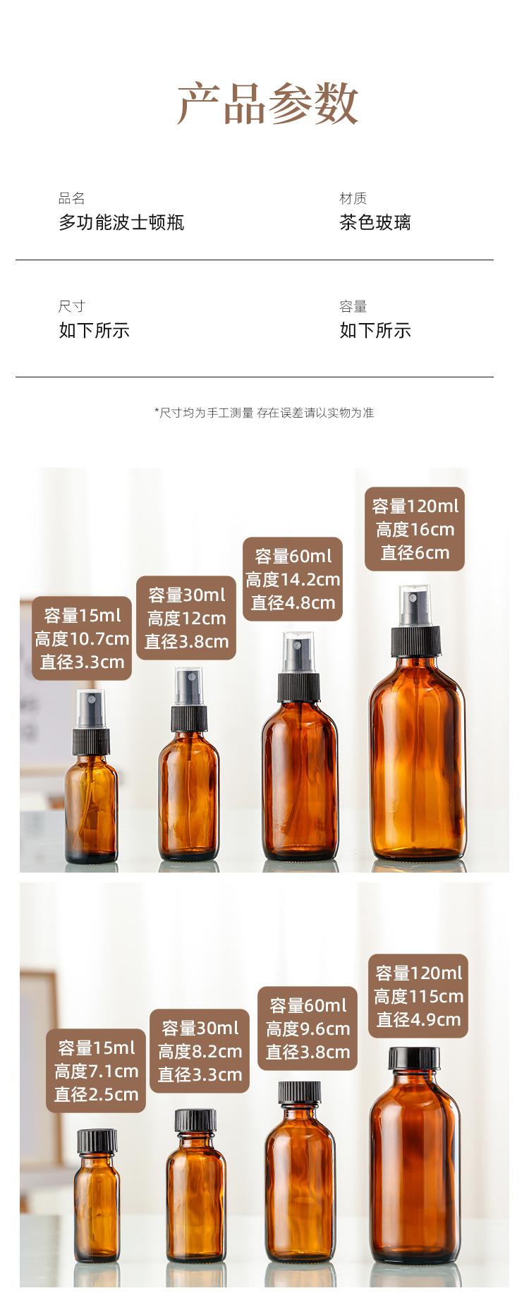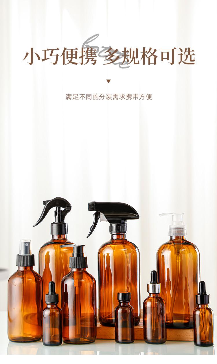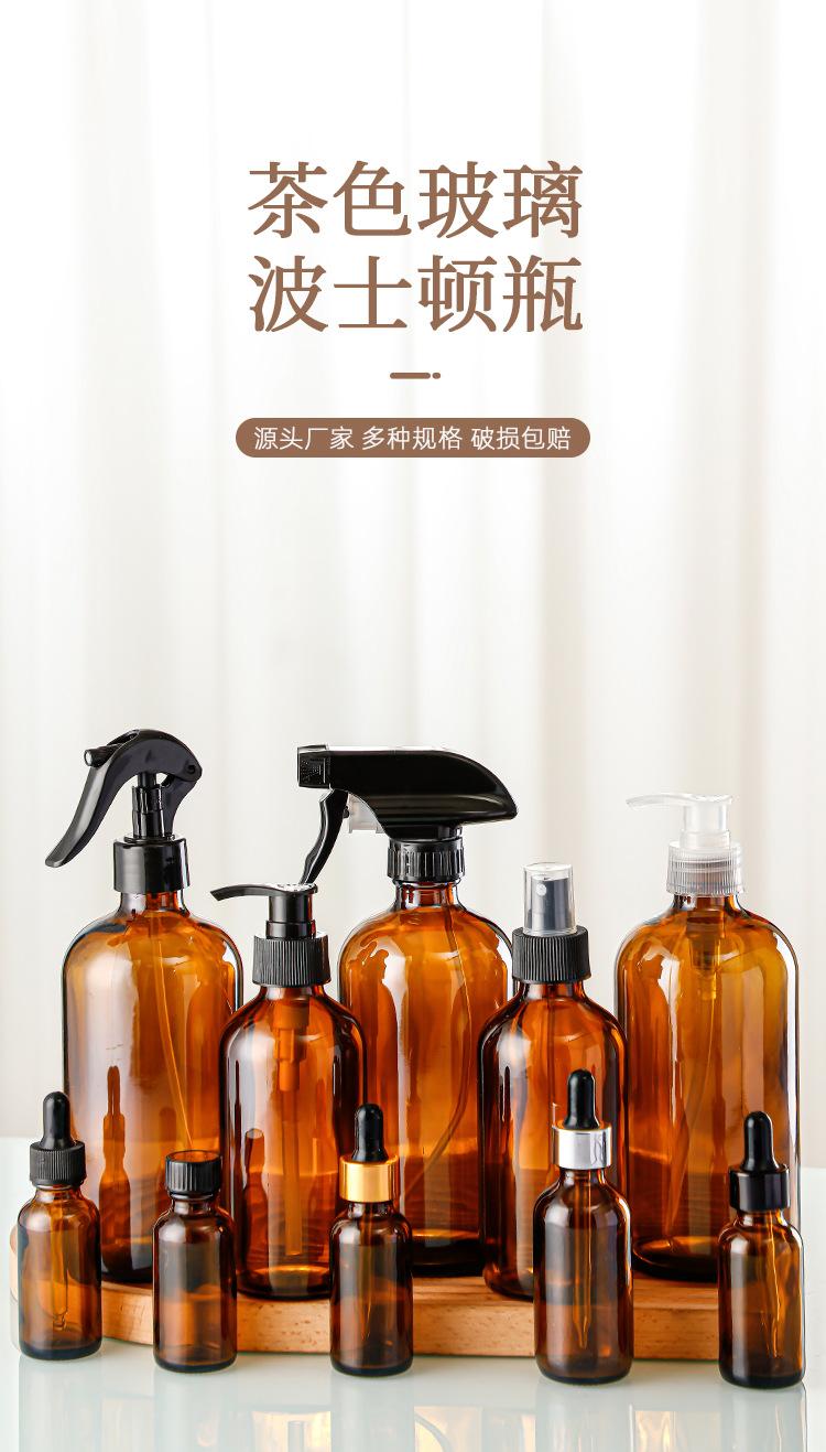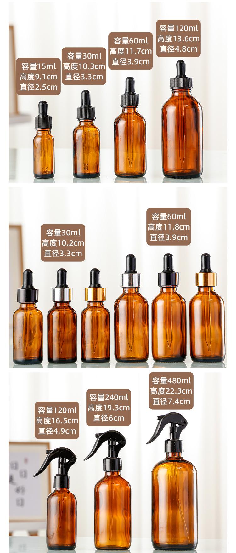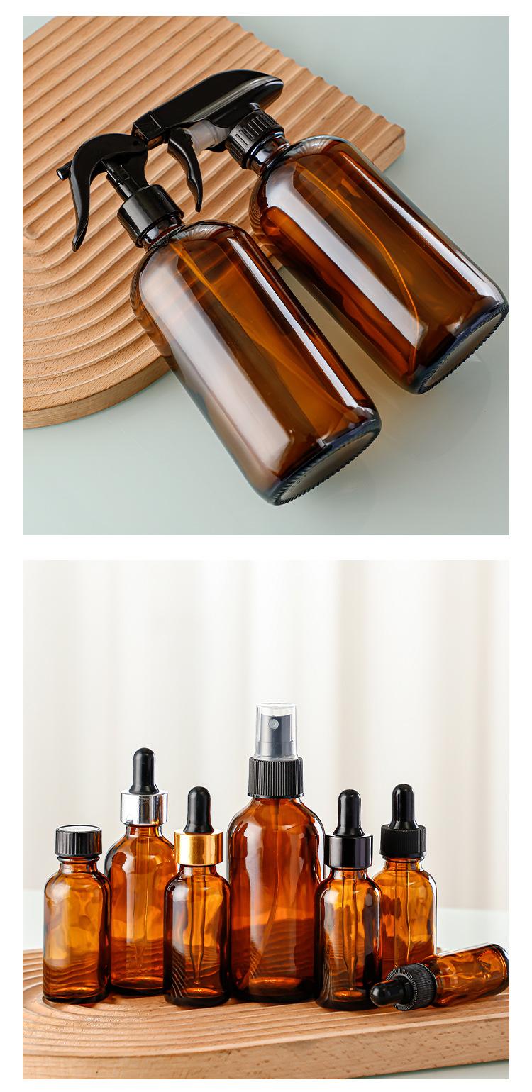 Botella de aceite esencial marrón, botella Boston de 30 ml, gotero de plástico, botella vacía, botella de esencia, botella con atomizador, subbotella cosmética