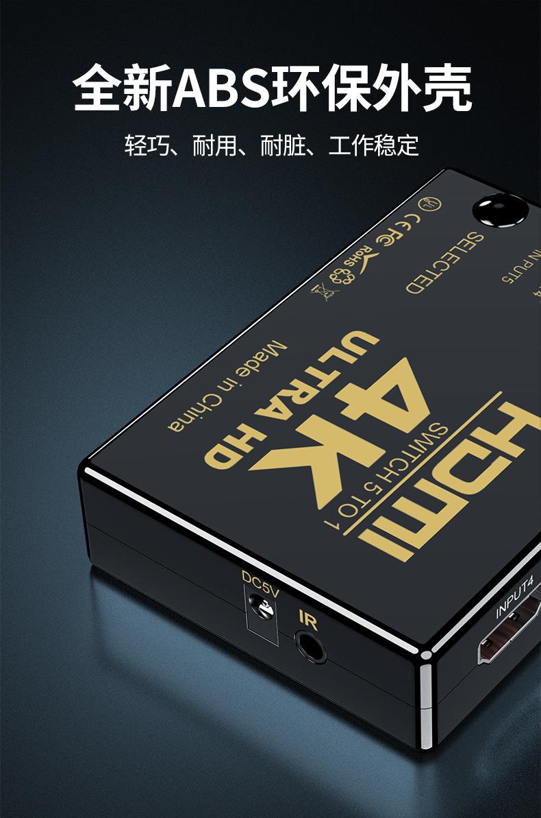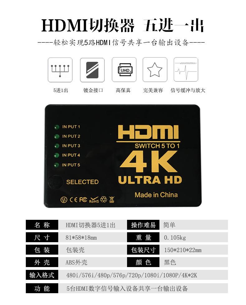 Conmutador de control remoto HDMI 5 en 1 salida carcasa de hierro de cola de cerdo 5 en 1 salida 5 cortes 1 HDMI 5 cortes 1 4K * 2K