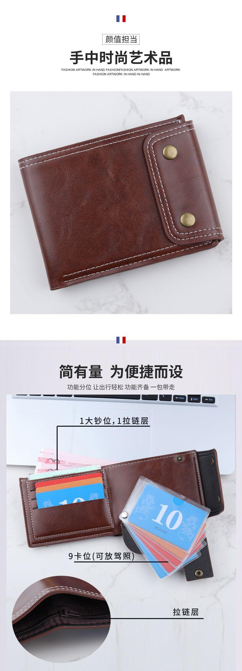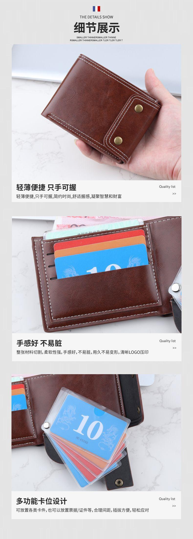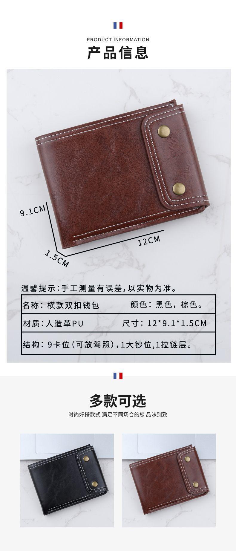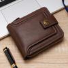 Nicho de Negocios Billetera Corta Multitarjeta con Doble Hebilla para Hombre Cuero Cera de Aceite Antimagnética Billetera para Hombre con Billetera con Cremallera