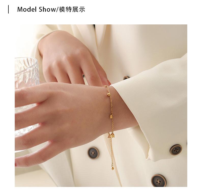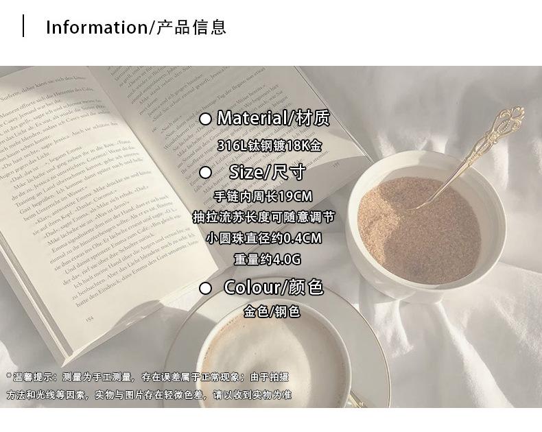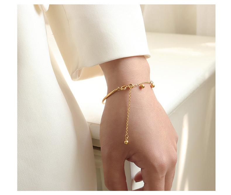 Compra Joyería ins europea y americana joyería de medio cosido hebilla alambre redondo bola de acero pulsera de borla acero titanio chapado en oro de 18k E213 al por mayor en Joom.pro