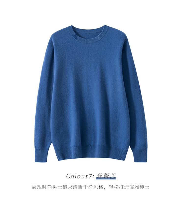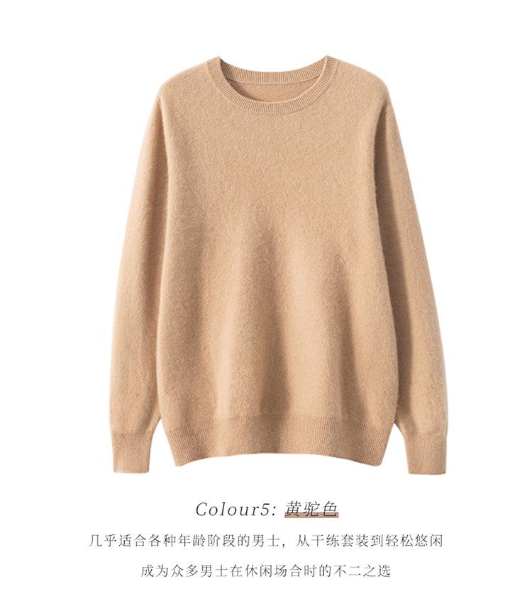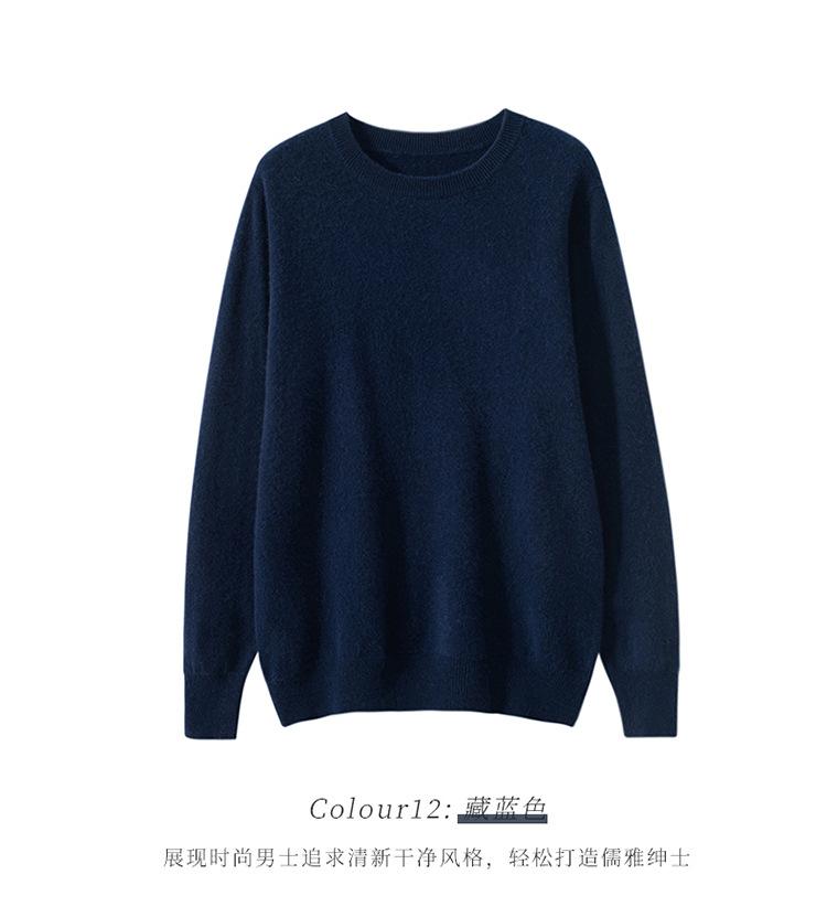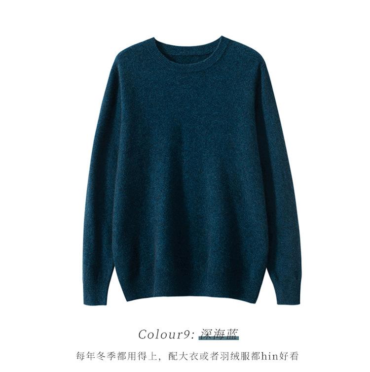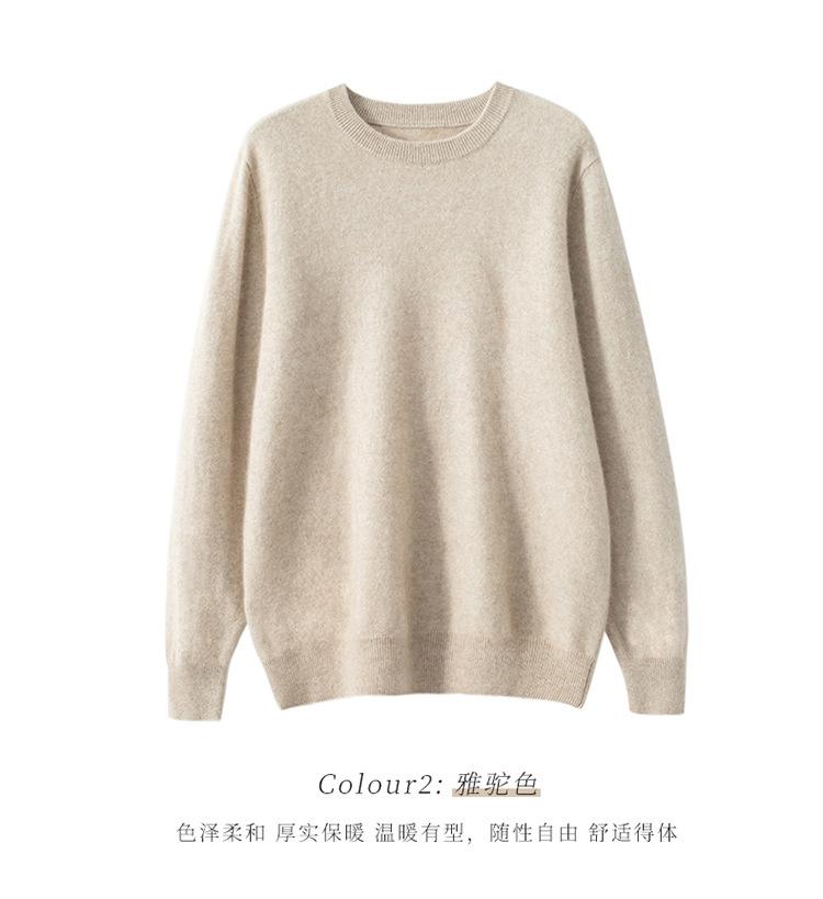 Nuevo Suéter de Cachemira para Hombre Otoño e Invierno 2024 Suéter de Cachemira Tejido de Cuello Redondo Holgado Casual para Fondo Talla Grande