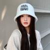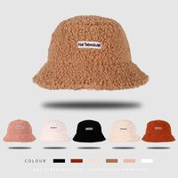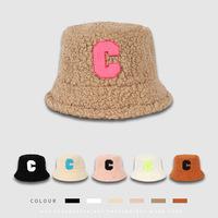 Sombrero de pescador de lana de cordero para mujer, otoño e invierno, con panel ligero, versión coreana, color sólido, letra C, terciopelo de cordero bordado, gorro de lavabo