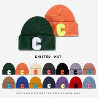 Gorro de lana color caramelo versión coreana para mujer, moderno, informal, con letra C, versátil, cálido y con protección para las orejas, para otoño e invierno
