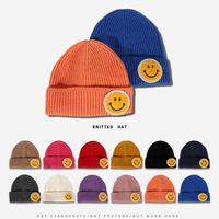 Gorro clásico de tela con cara sonriente para mujer, moderno gorro de invierno, pequeño gorro de piel de melón que muestra la cara, cálido gorro de lana de punto para otoño e invierno.