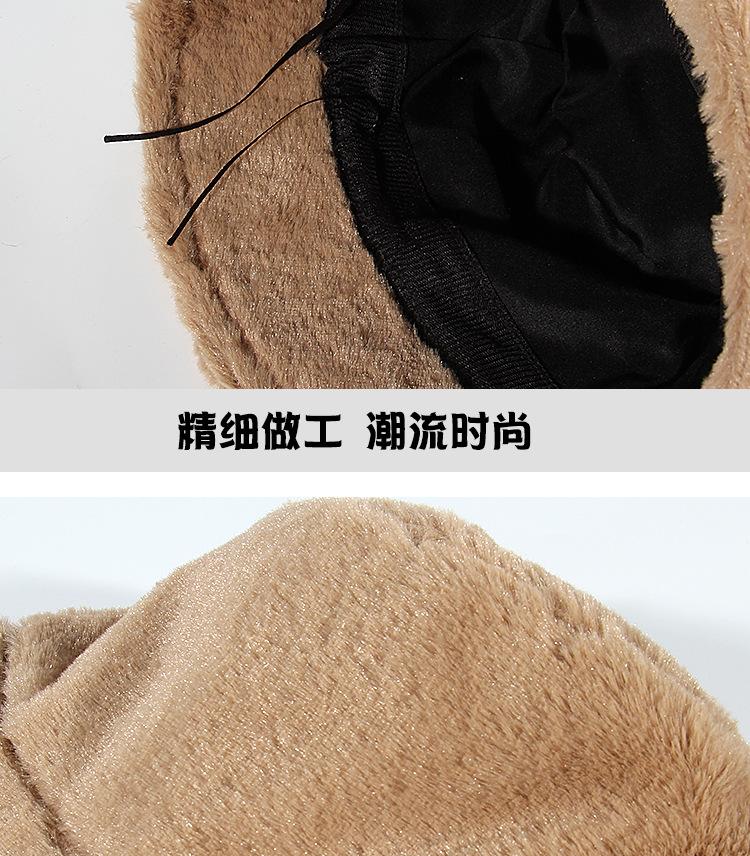 Sombrero de pescador de piel de conejo de color sólido con tablero ligero de nuevo estilo de otoño e invierno para mujer, cálido para parejas, clásico, para exteriores, moda moderna, sombrero de lavabo para mujer