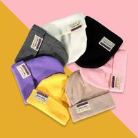 2021 nuevo sombrero de otoño e invierno para mujer, sombrero de lana con etiqueta de tela de color sólido, sombrero de punto simple de invierno de estilo coreano para hombres y mujeres