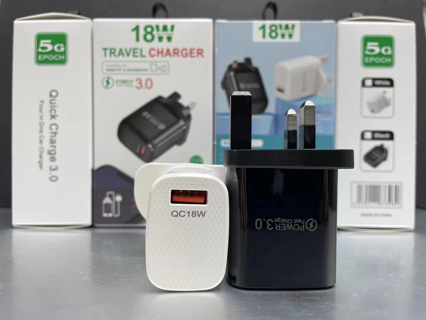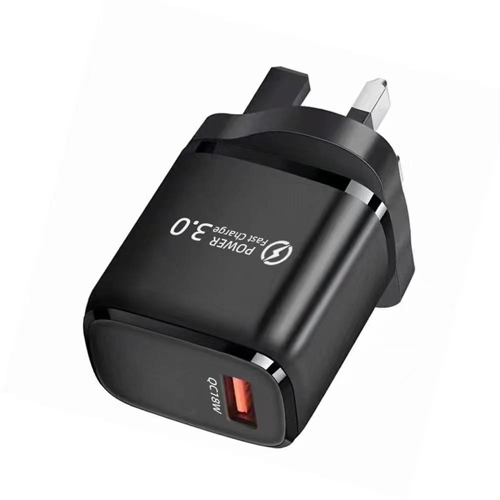 Cabezal de carga rápida para teléfono móvil al por mayor adecuado para cargador Samsung Apple Huawei 18W estándar británico cargador de carga rápida enchufe USB