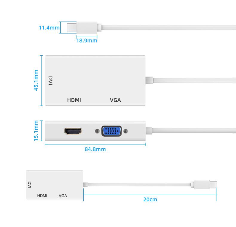 Adaptador Suibo Dp Tres-En-Uno Cable de Alta Definición Mini Dp a Hdtv Vga Dvi Cable Adaptador Convertidor 3-en-1