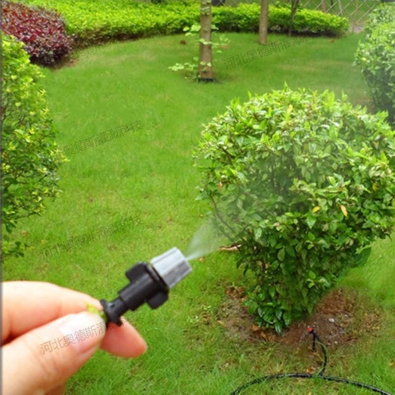 Sistema de riego de jardín con aspersor atomizador gris, dispositivo de riego automático con una sola salida, aspersor de riego por enfriamiento