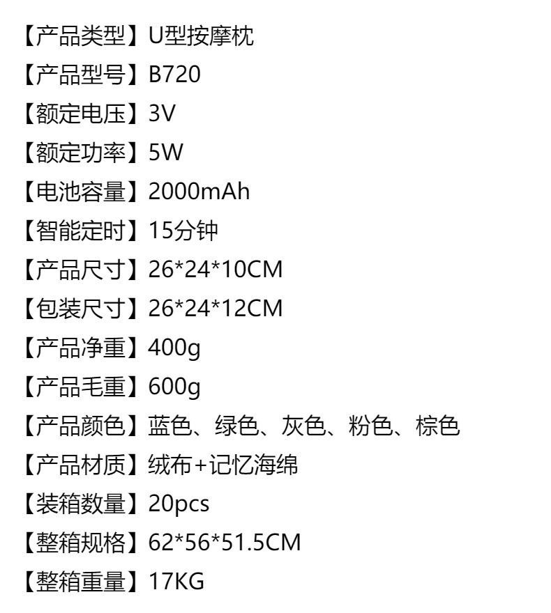 Almohada de Masaje en Forma de U Almohada en Forma de U para Coche Compresa Caliente Hombro y Cuello Almohada Cervical Portátil Oficina Masajeador de Amasamiento para Cuello