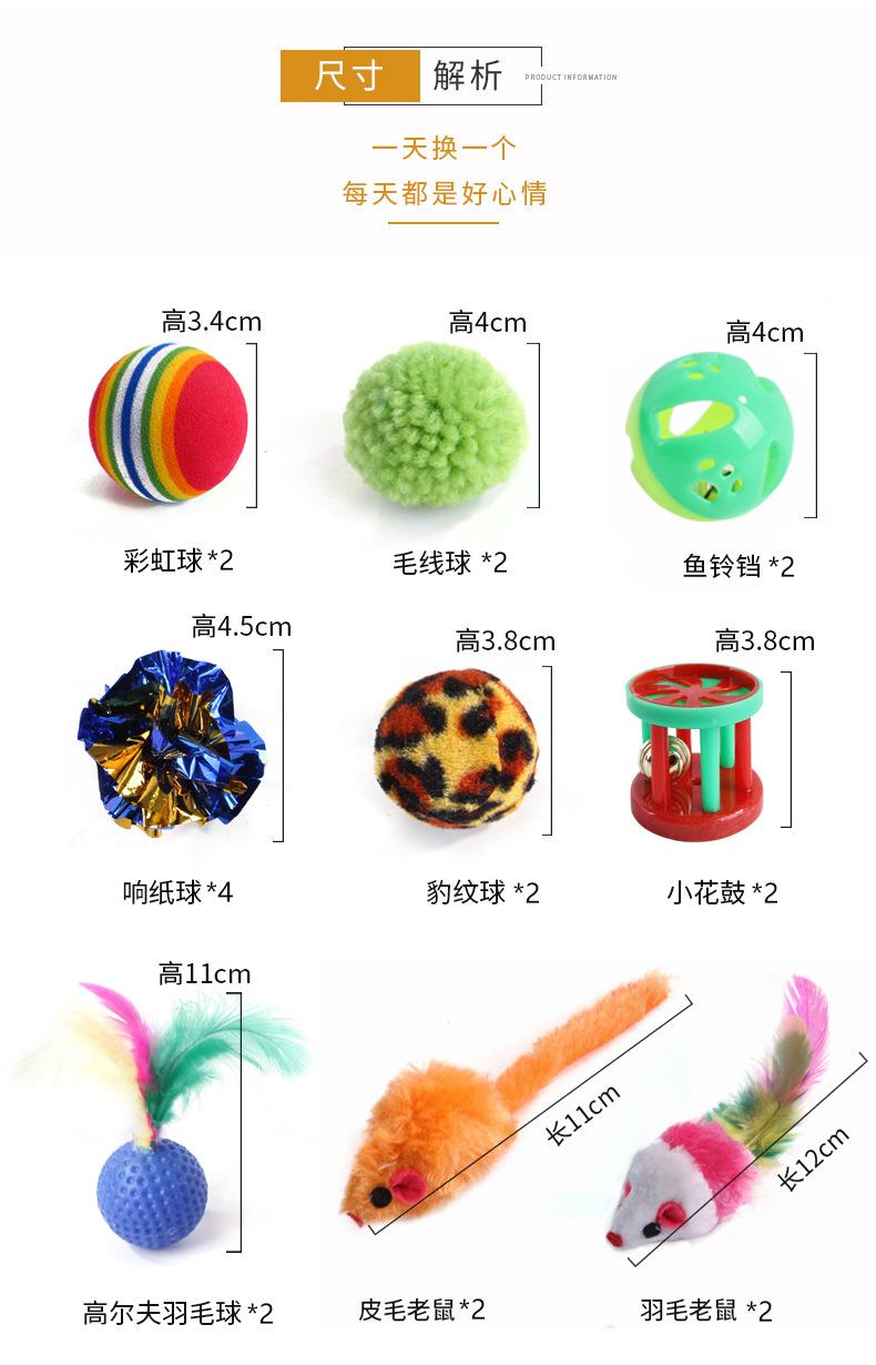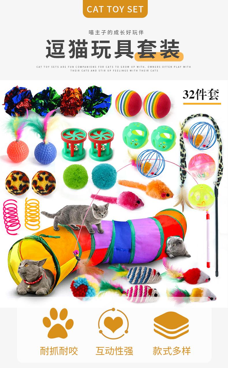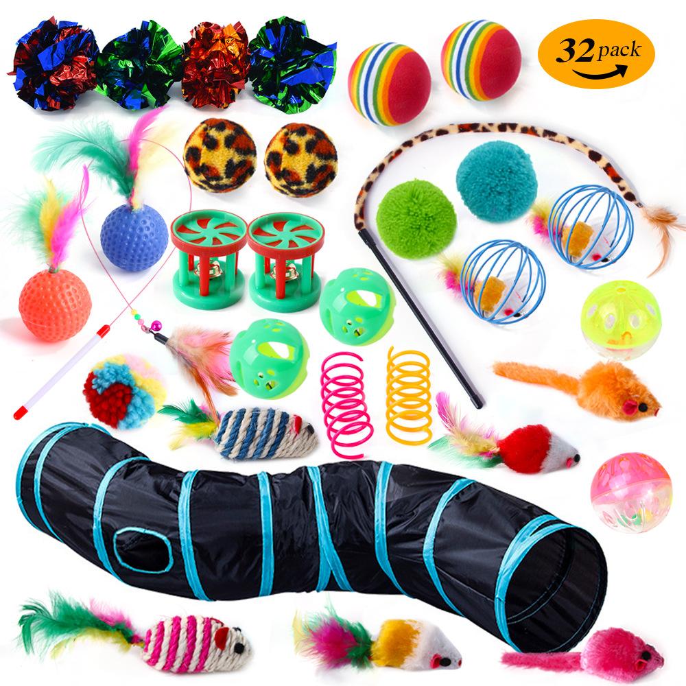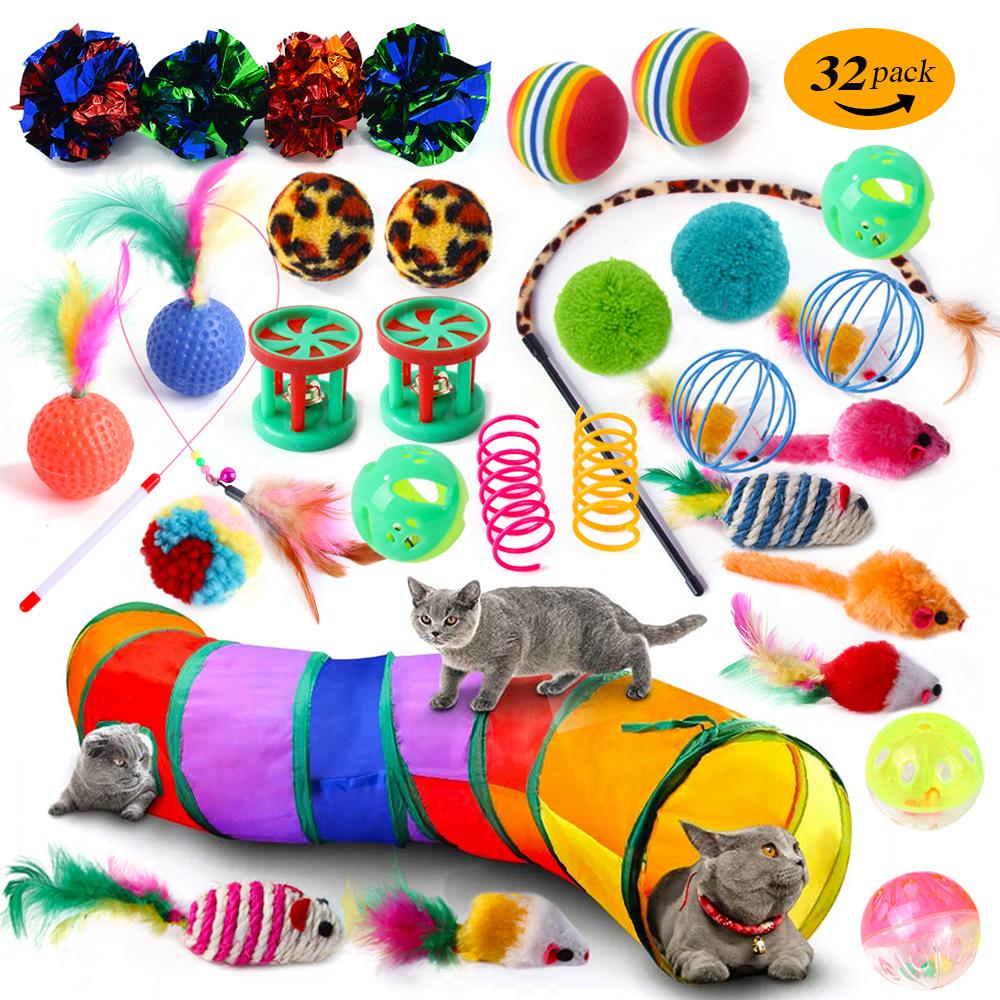 Juguete para gatos transfronterizo, nuevo, con forma de campana, bola, pluma, palo de gato, peluche, ratón, resorte, túnel para gatos, juego de 22 piezas