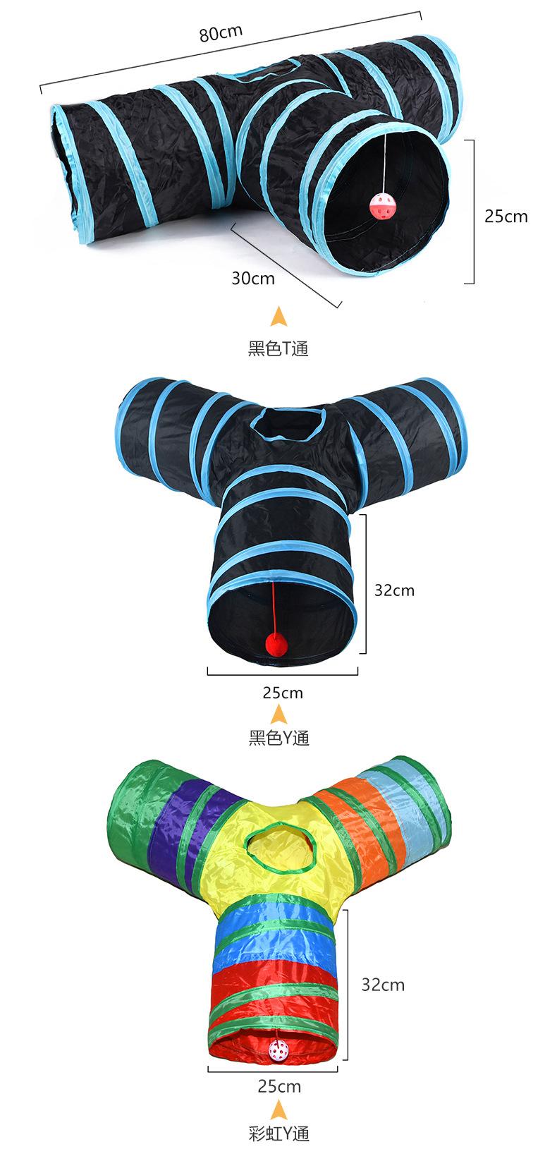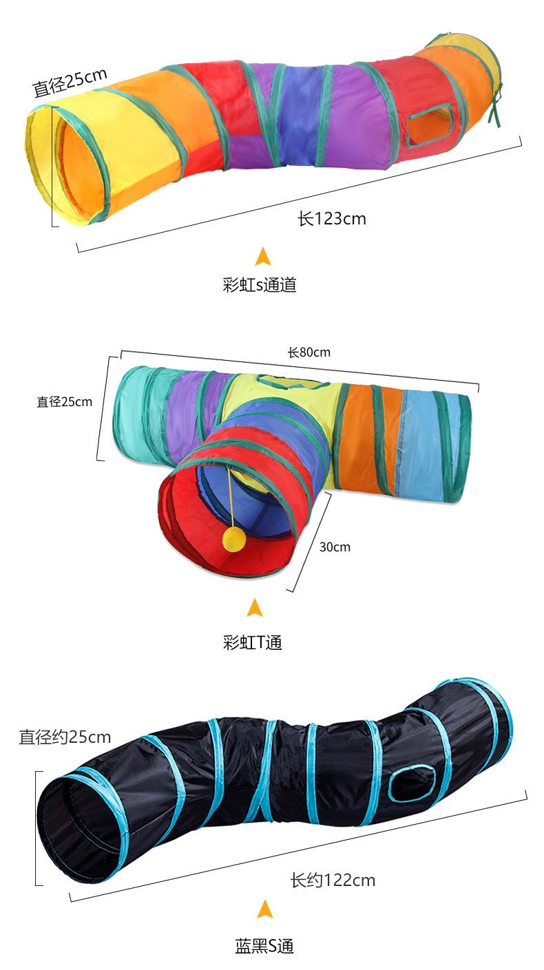 Juego de túnel para gatos arcoíris transfronterizo, juguete, campana, pelota, pez volador, anillo de resorte, bola de papel, pluma, palo para gato