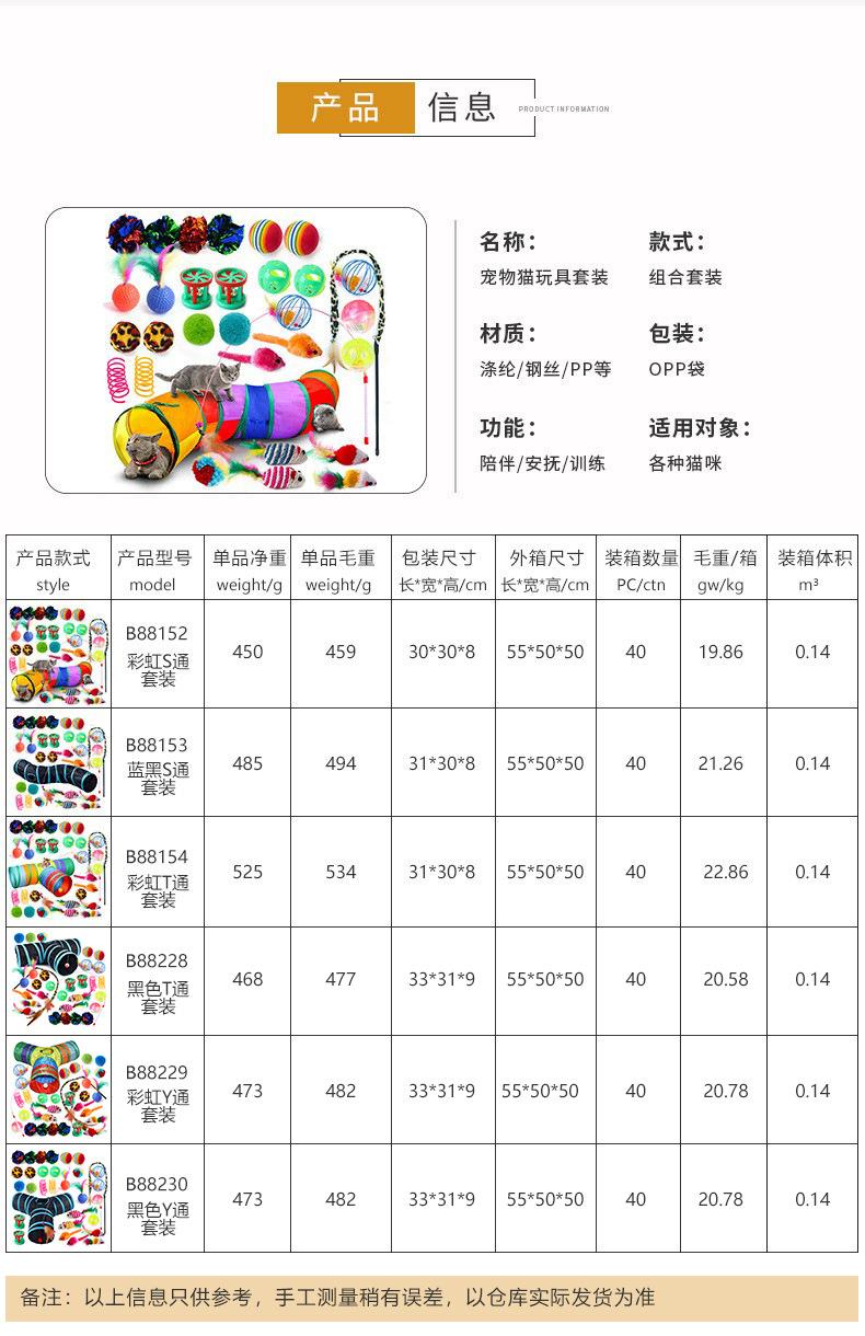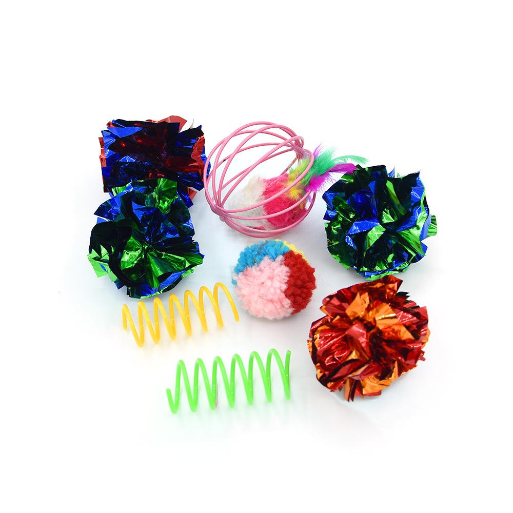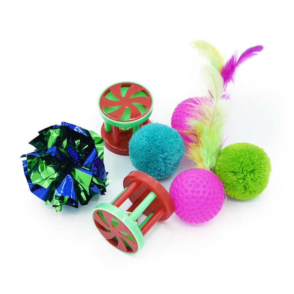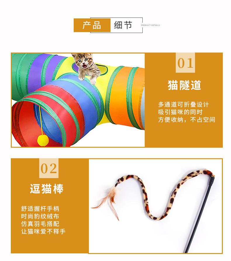 Set de juguete para gato mascota difuso transfronterizo juguete para gato Campana Bola pluma de resorte palo para gato Túnel para gato Arcoíris