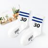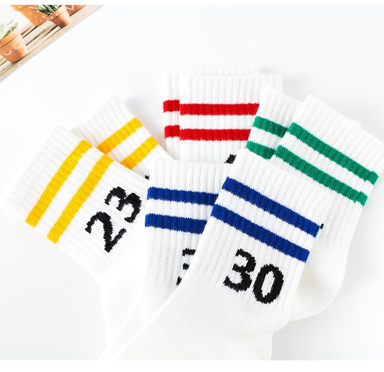Calcetines para niños y niñas, primavera, verano, otoño e invierno, estilo coreano, hasta la mitad de la pantorrilla, a rayas, para estudiantes, calcetines deportivos digitales para niños medianos y grandes, venta al por mayor