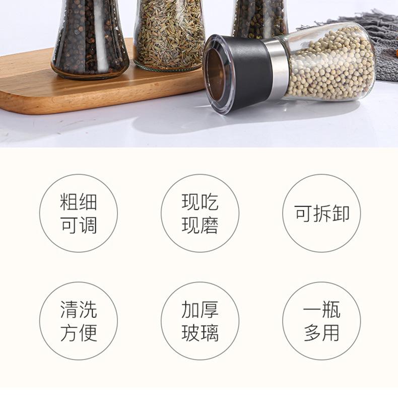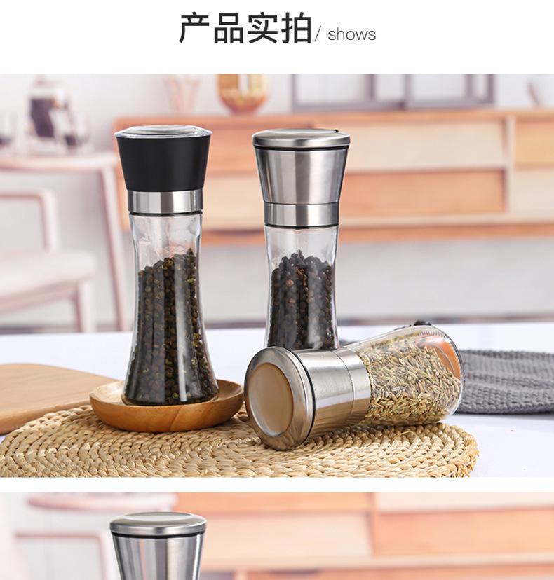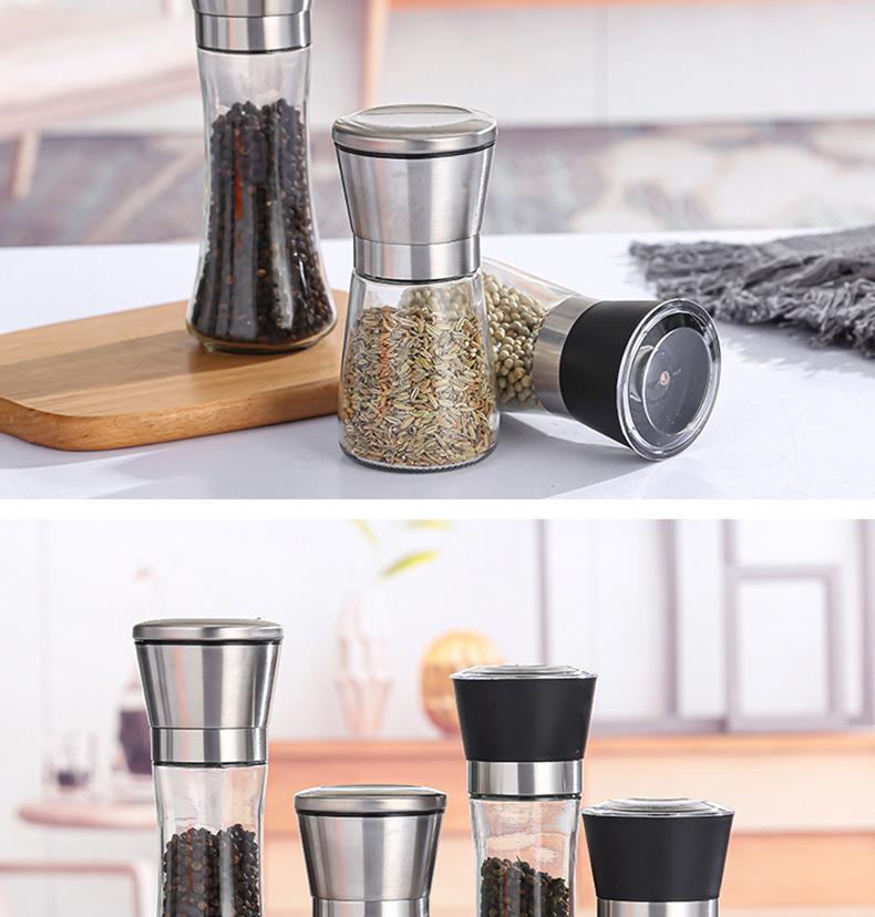 Molinillo de Pimienta de Acero Inoxidable Botella de Molienda de Vidrio Molienda de Pimienta en Polvo Suministros de Cocina Botella para Condimentos Tarro para Condimentos