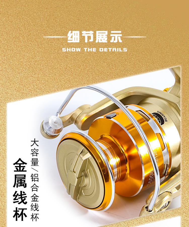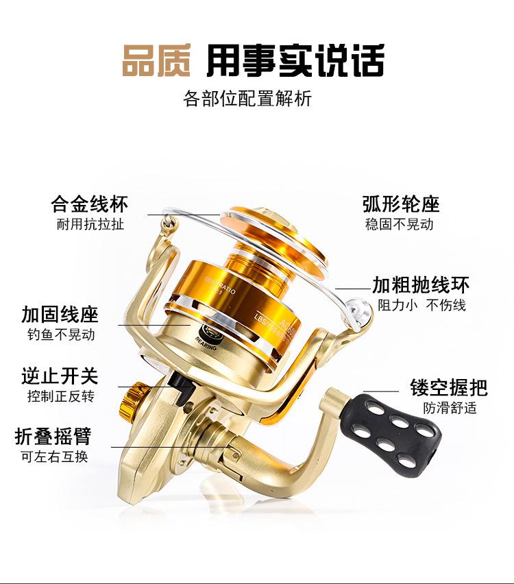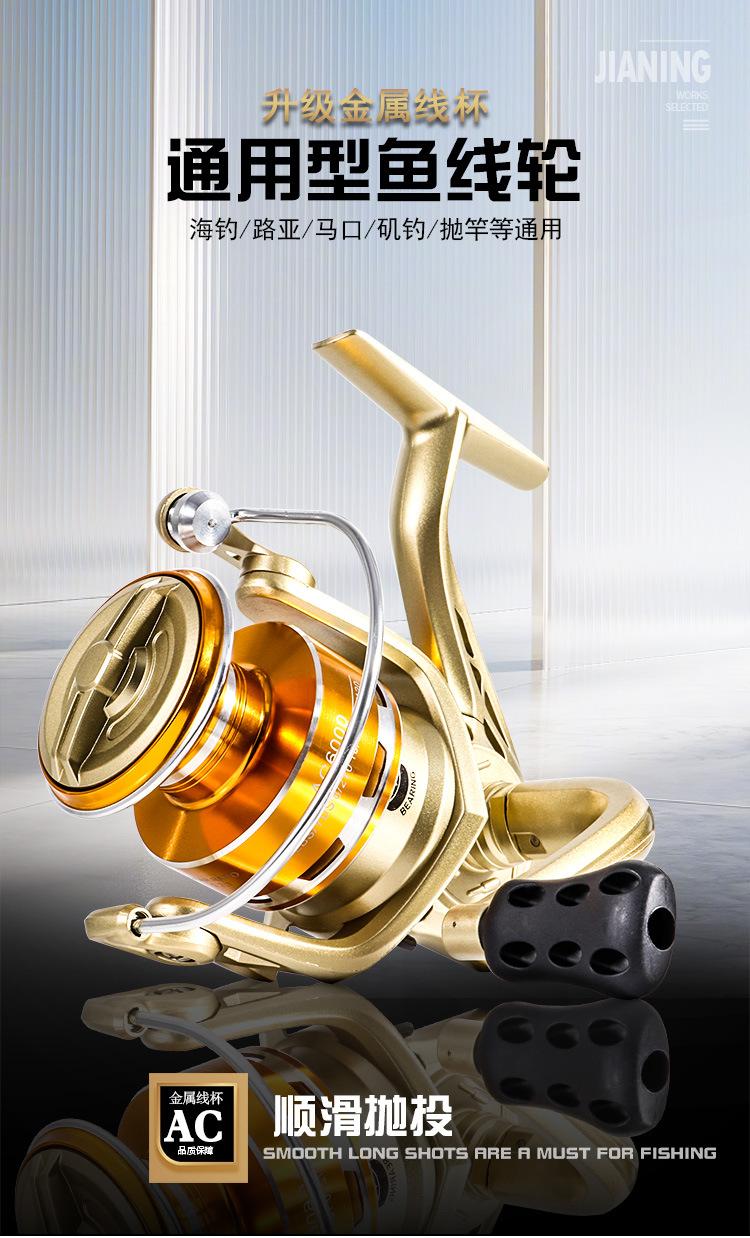 Carrete de pesca con rueda giratoria de metal, carrete de pesca de mar, carrete de pesca de arroyo, caña de mar, rueda de pesca de largo alcance, rueda para lanzar caña, caña de mar, rueda de línea de pesca