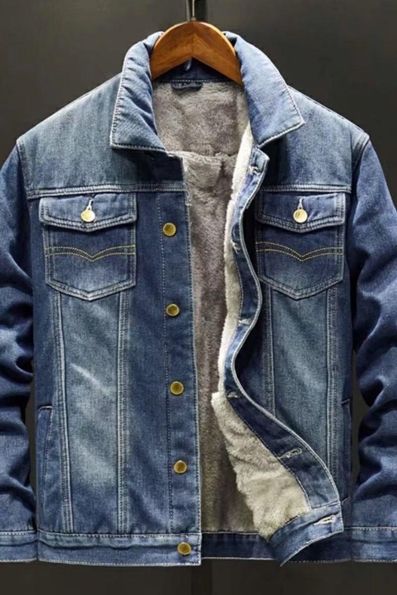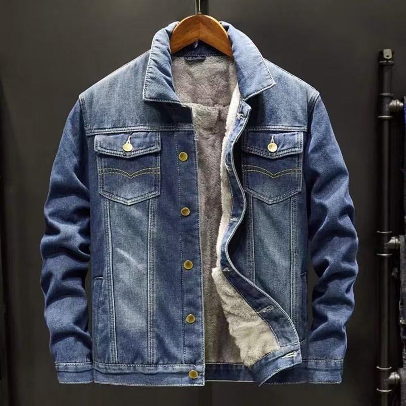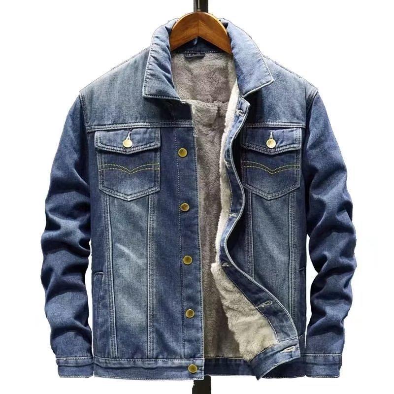 Chaqueta de mezclilla gruesa con forro polar de invierno para hombre, estilo coreano, chaqueta cálida, jeans casuales de moda para estudiantes