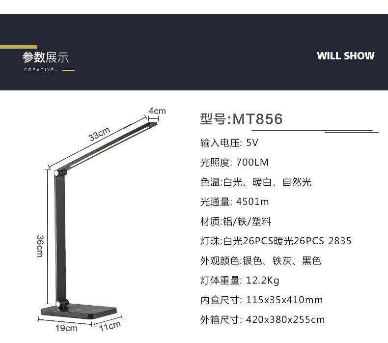 Lámpara de escritorio multifuncional con protección ocular para dormitorio de estudiantes, iluminación LED, lámpara de lectura de aprendizaje, lámpara de escritorio plegable de carga inalámbrica, creativa